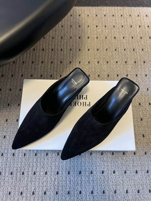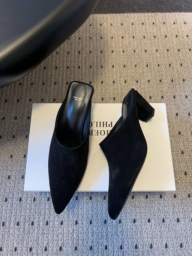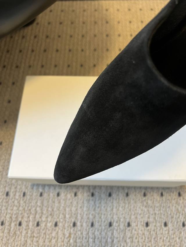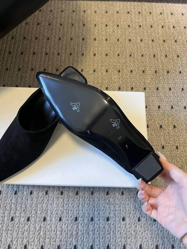 Carve*26Ss Pointed-Toe Mule High Heels, Half-Slip-On High Heels DDD Featuring an ultra-pointed toe and a mule design without a heel, the shoe boasts clean, flowing lines. The kitten heel height has been optimized for both elegance and stability. The upper is primarily made of fine suede, with a smooth leather lining. The materials are high-quality and soft to the touch, and different suede colors offer varying textures. DDD With minimal embellishments, the minimalist design highlights the brand's French minimalist aesthetic. The simple pointed-toe mule style is suitable for various occasions such as commuting, dates, and casual socializing. Dark colors are versatile and classic, while earth tones offer a more retro feel. DDD Upper: Denim Ddd Lining: Sheepskin Ddd Outsole: Genuine Leather Outsole Ddd Heel Increase: 5cm Ddd Size: 35-40, Size 40 is custom-made and non-refundable Ddd DDD