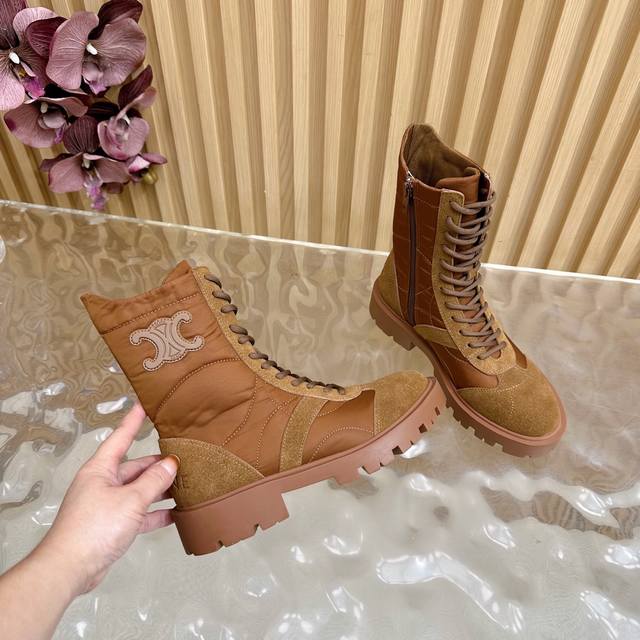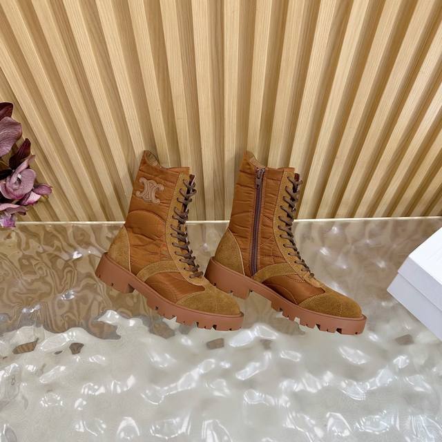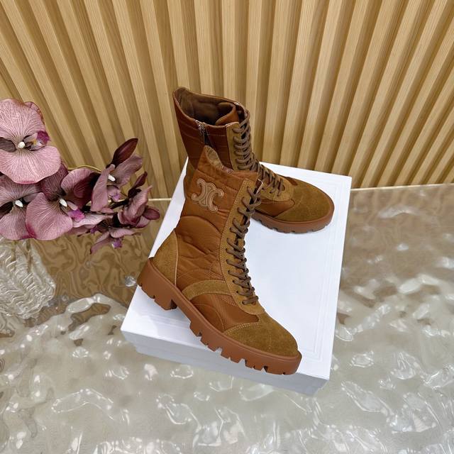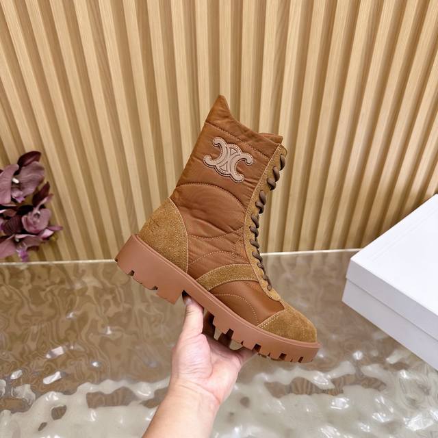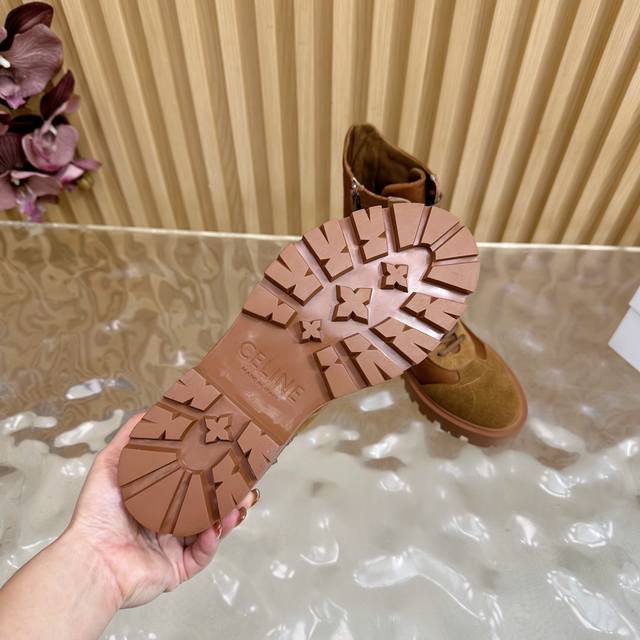 2025 Celine Fall/Winter New Arrivals (Synchronized with Department Stores) | Celine 2025 Fall/Winter New Thick-Soled Timber Boots! Super stylish and cool on the feet! Elegant yet edgy. Absolutely a must-have item this fall/winter! Material: Custom imported sheepskin upper, sheepskin lining and insole, original mold TPU outsole. Size: 35-41 (40-41) Customized.