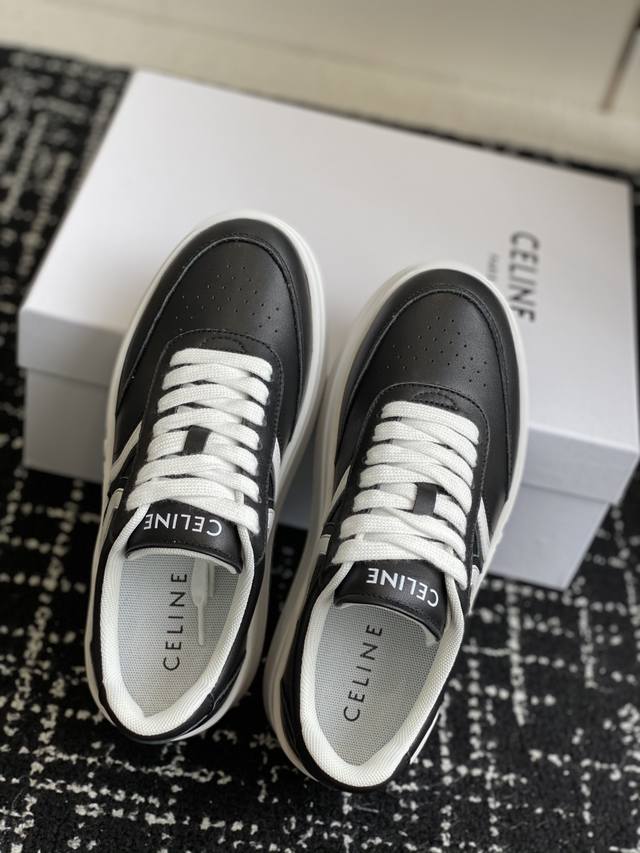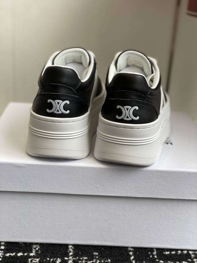 Celine logo thick-soled bread shoes embossed on the back and side of the shoe 2025 spring and summer new women's Arc de Triomphe logo lace-up simple and comfortable, clean and neat, increase height and make legs look thinner