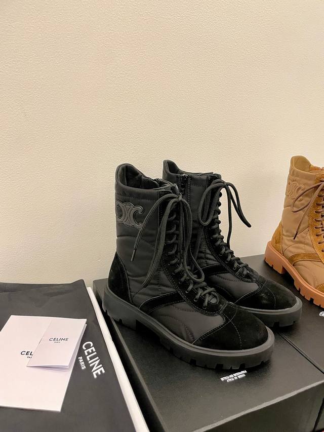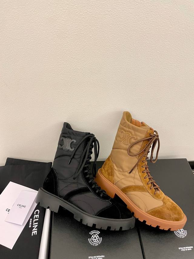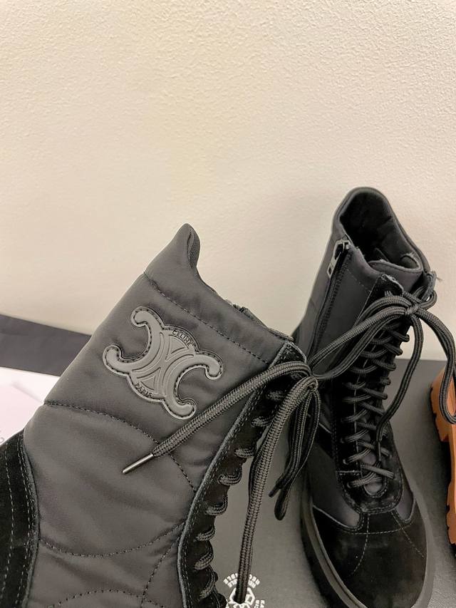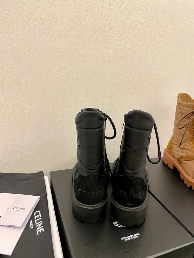 Celine 2025 Recommended Product: Maillard Foam Martin Boots! These platform ankle boots are incredibly popular this season, with a consistently high-quality design. The perfectly crafted last and round toe are a standout feature. The smooth lines and precise fit, along with the neat stitching, create a premium feel. They're incredibly flattering, add height, and are versatile and stylish! The sole is made to order, ensuring exceptional comfort. Upper: Cowhide suede and waterproof foam down fabric. Insole: Sheepskin insole. Heel height: 3.5cm. Sizes: 35-39, 40-41 (custom sizes available). Packaging: Original Celine packaging.