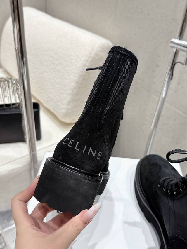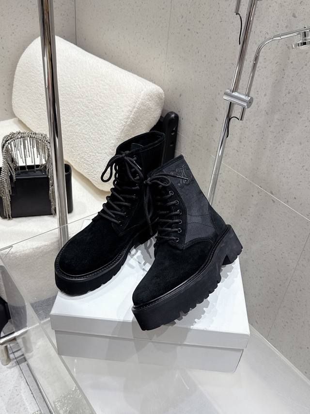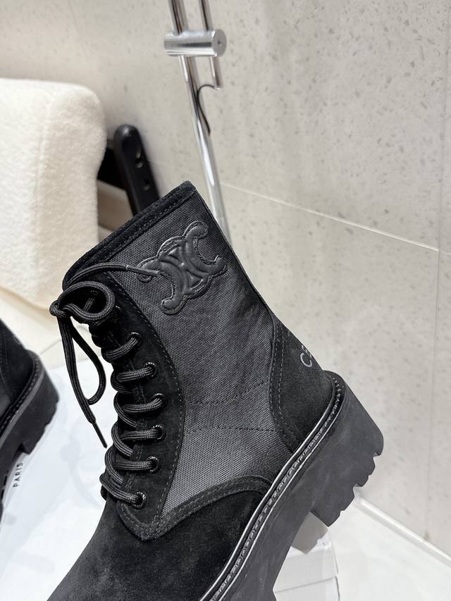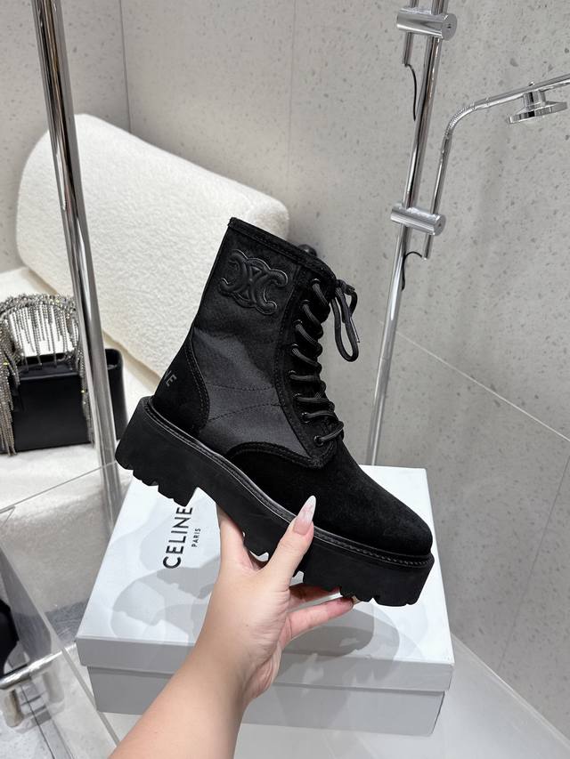 Celine 2025 Winter New Canvas Platform Martin Boots