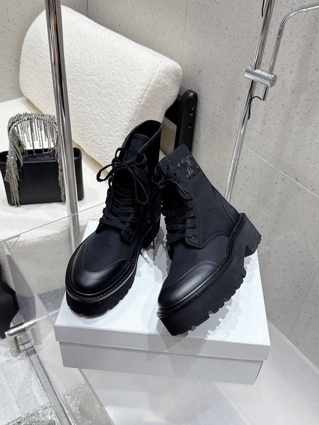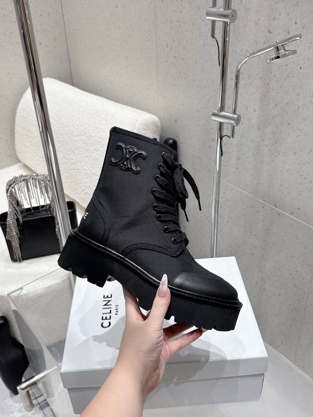 Celine 2025 Winter New Thick-Soled Canvas Dr. Martens Boots