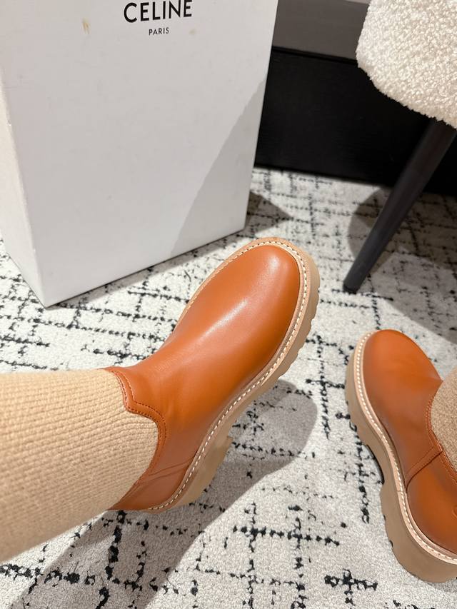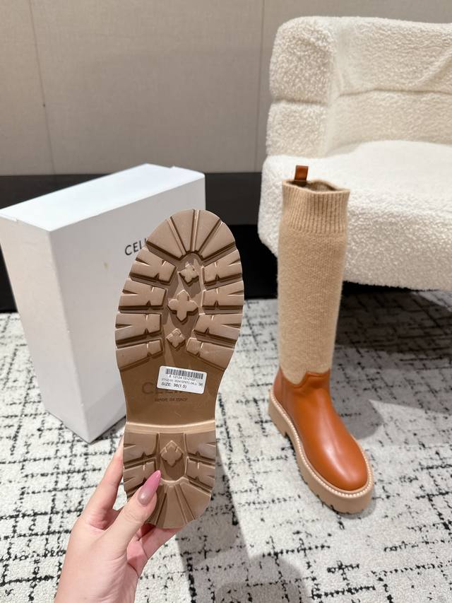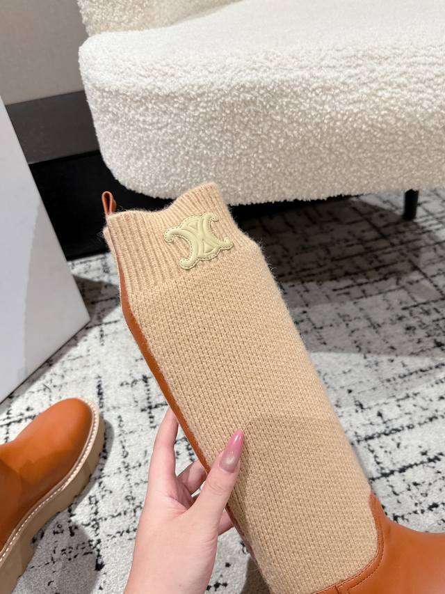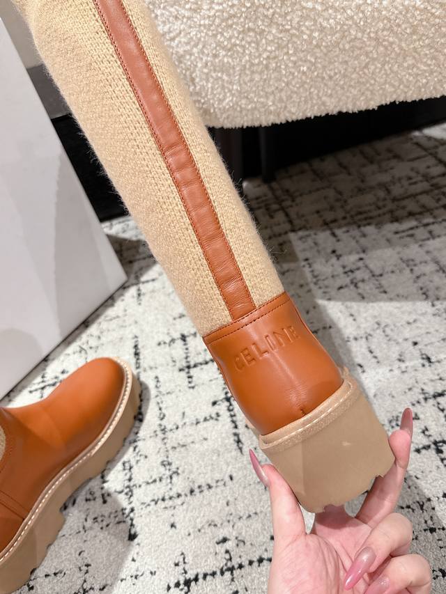Celine 25 Fall/Winter Unlverslte Rider Boots This height of boot is very fashionable, very comfortable, and makes your legs look longer! The sole is thick enough, providing a good height boost! Made of selected imported calfskin, adorned with the Arc de Triomphe logo. The texture is excellent, and they look super stylish on your feet! Material: Custom grained calfskin, not ordinary market leather. Lining: Sheepskin lining. Outsole: Genuine leather welt combination outsole. Size: 35-41. Sizes 40 and 41 are custom-made and non-refundable.