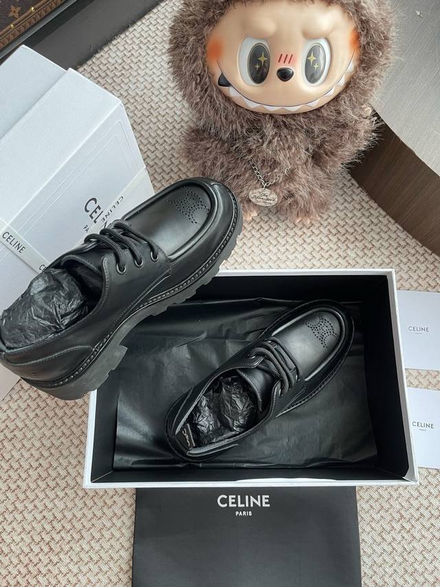 Celine 25 New Platform Loafers. The entire shoe is sourced from the original manufacturer and developed using custom materials. It features an exclusive molded outsole, and all details are identical to the original. Even the packaging is the same as the authentic product. Sizes: 35-42.
