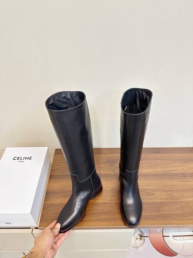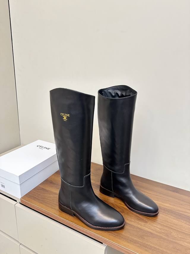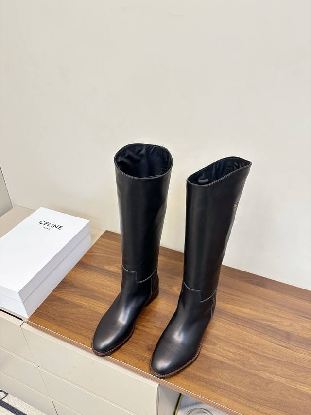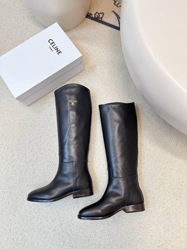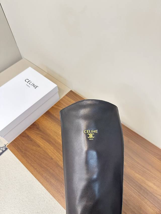 Celine 25p Arc de Triomphe Rider Boots DDD Celine Arc de Triomphe Rider Boots, made of soft calfskin with a silk leather lining, are incredibly comfortable! The boot shaft features a gold-stamped Arc de Triomphe logo, exuding brand prestige. Ddd Italian genuine leather outsole, durable and slip-resistant, perfect for commuting or going out in autumn and winter. The boot shaft height is just right, flattering the leg shape, and looks great with skirts or trousers. A retro European and American style, fashionable and practical, it's a must-have high-end item for autumn and winter! Ddd Sizes 35-40 40.41 Custom made DDD Ddd