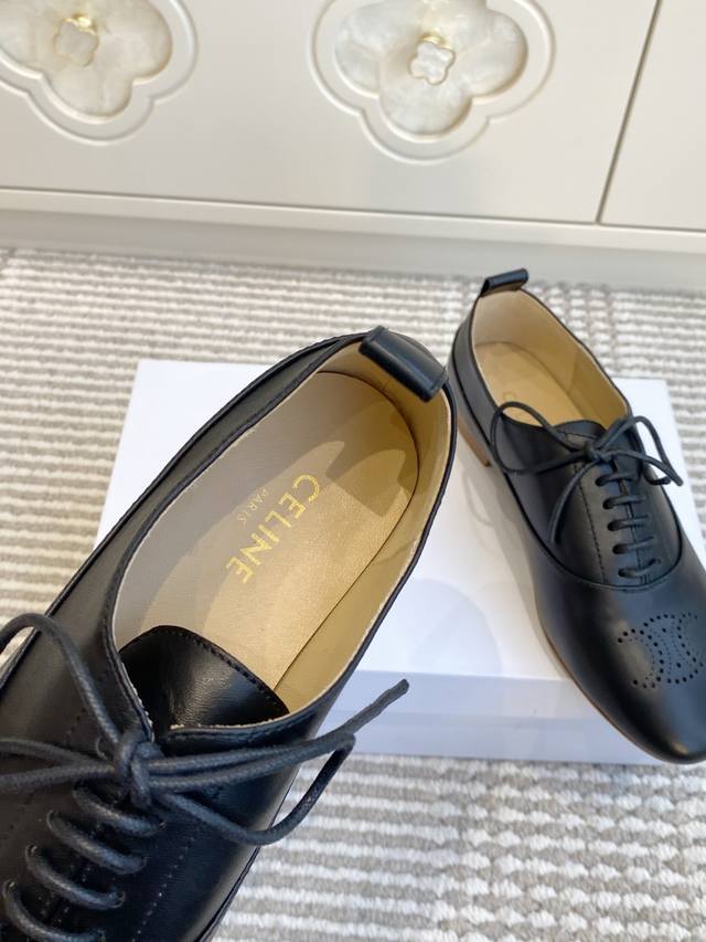 Celine 25Ss Autumn/Winter New Arrival Triumphal Arch Lace-up British Style Leather Shoes DDD The classic Arc de Triomphe logo is combined with the classic 70s style, creating a retro and casual yet youthful and stylish look. Very versatile for everyday wear, lightweight and breathable, fashionable and chic for any occasion. Super good-looking DDD Upper: Made of original imported soft patent leather mixed with sheepskin DDD Insole: Sheepskin DDD Outsole: Original custom-made Italian imported genuine leather DDD Sizes: 35-39 40.41 Made to order DDD