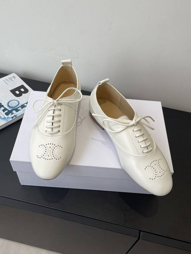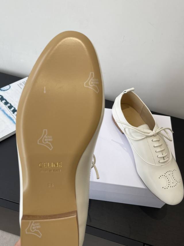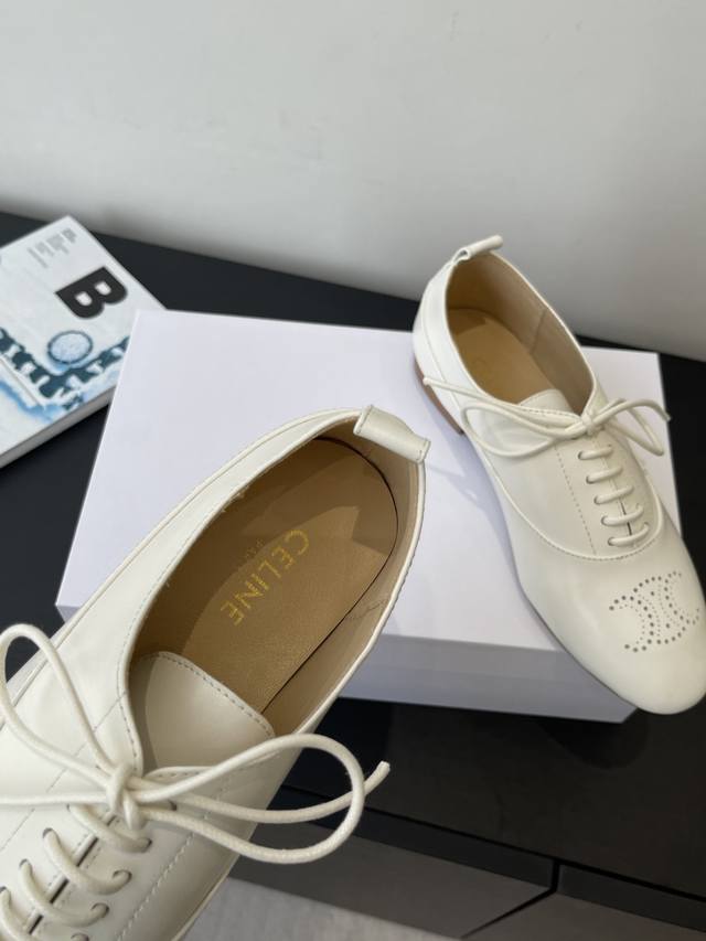 Celine 25Ss Autumn/Winter New Lace-up British Style Leather Shoes DDD The classic Arc de Triomphe logo is blended with a classic 70s style, creating a retro, casual, and youthful look. Very versatile for everyday wear, lightweight and breathable, stylish and effortlessly chic