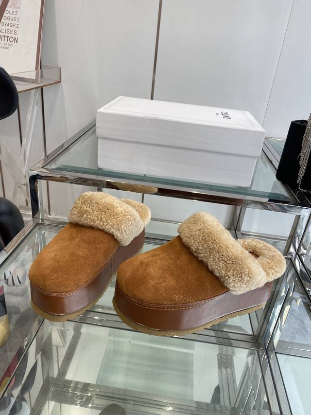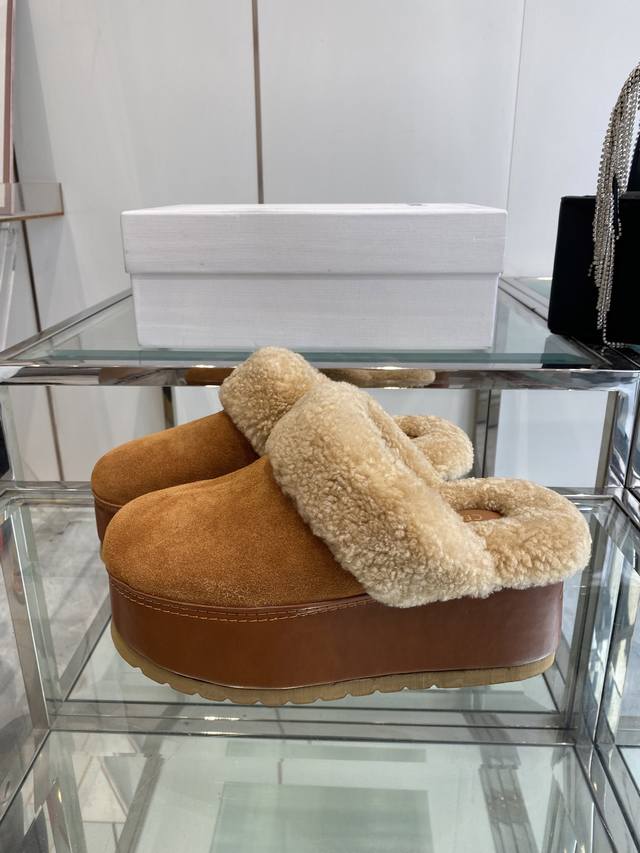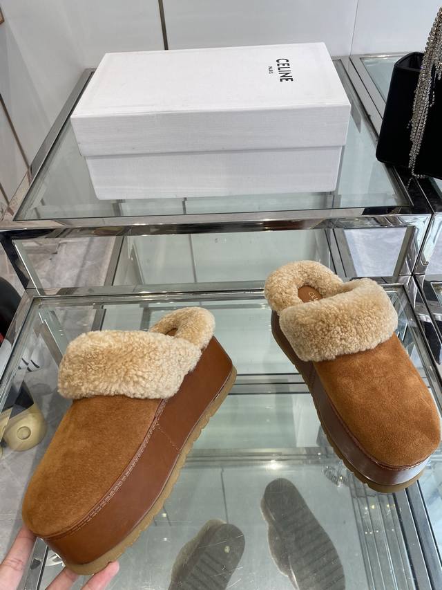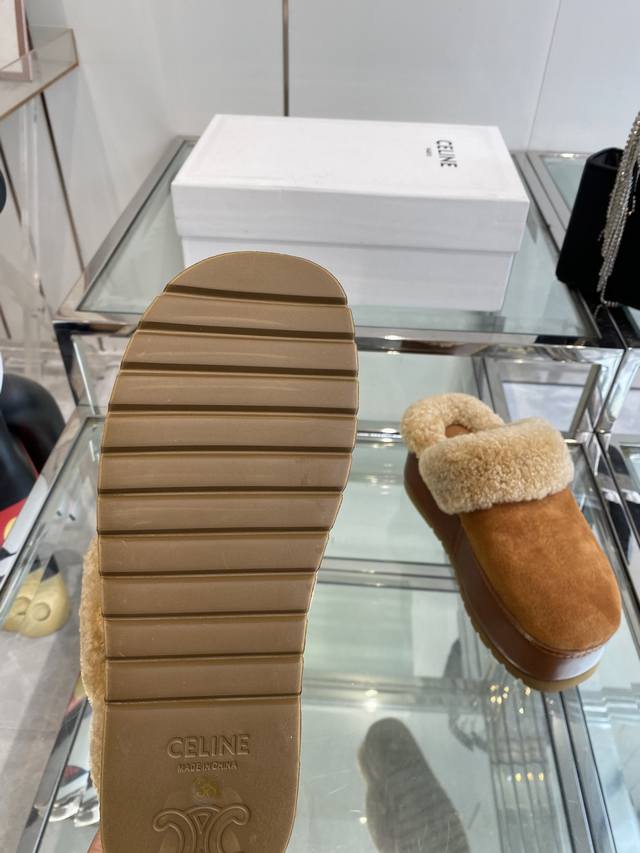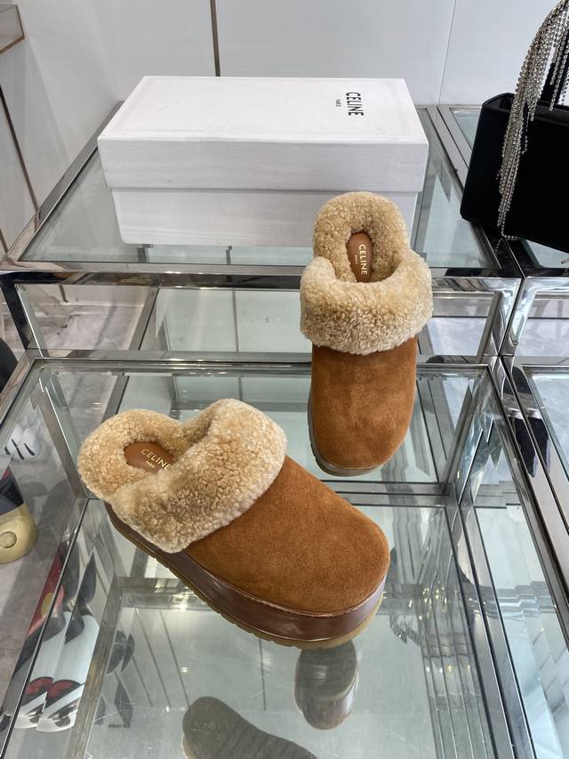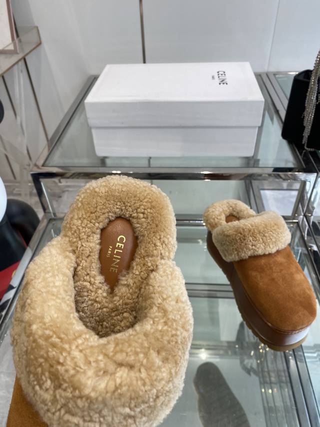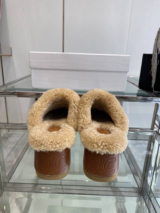 Celine 25Ss Fall/Winter New Thick-Soled Wool Closed-Toe Slippers