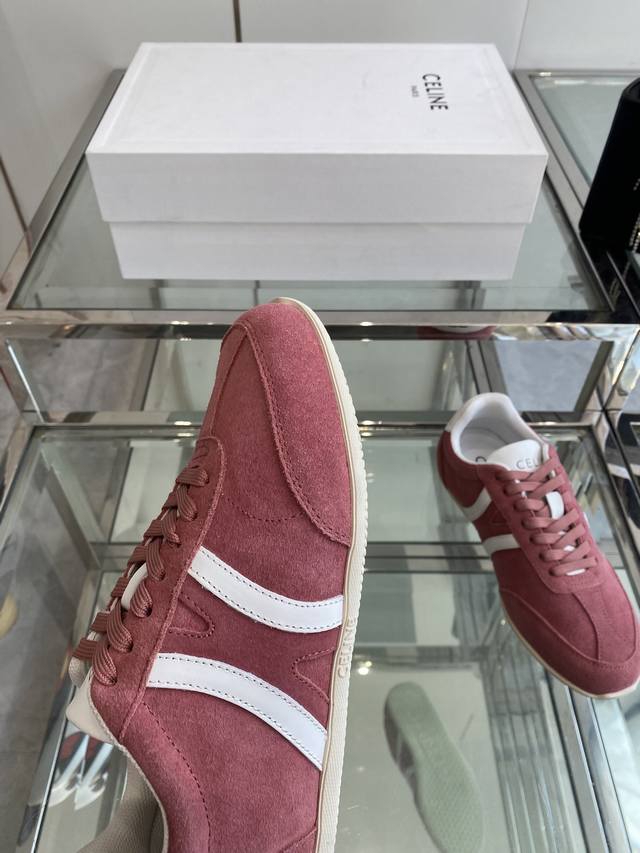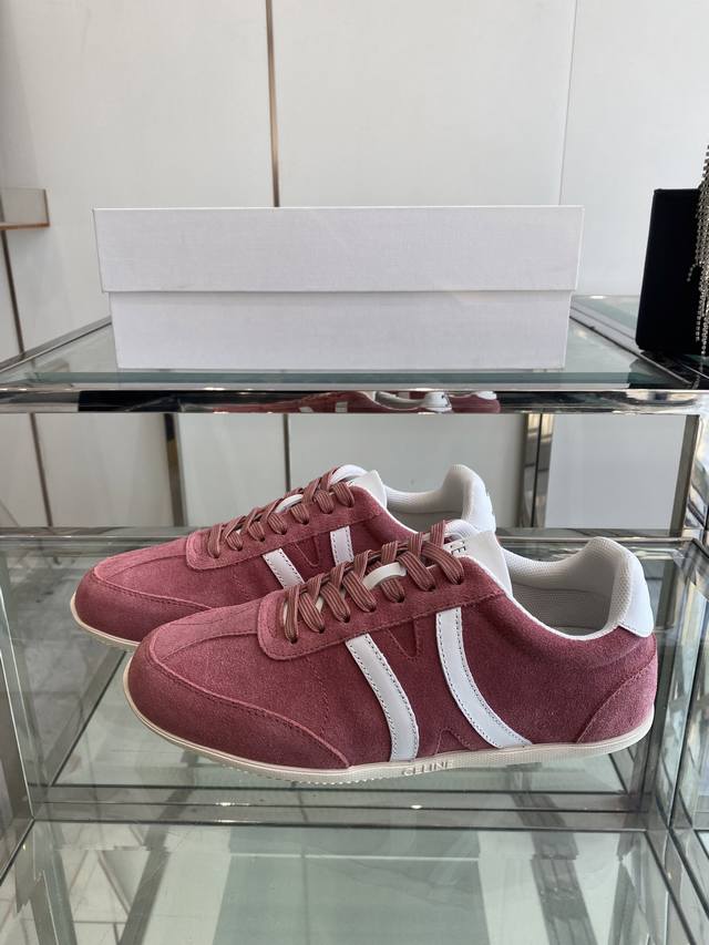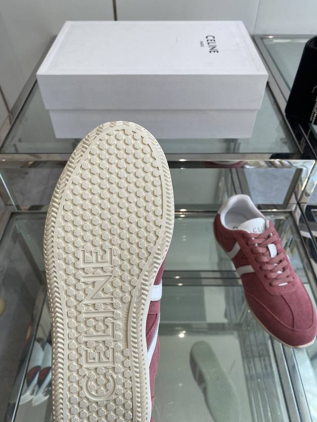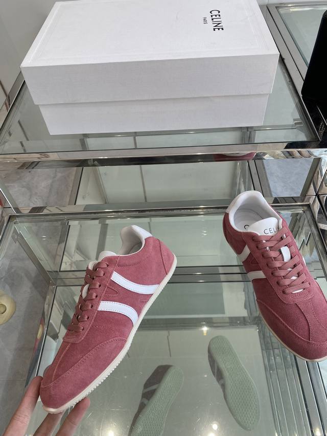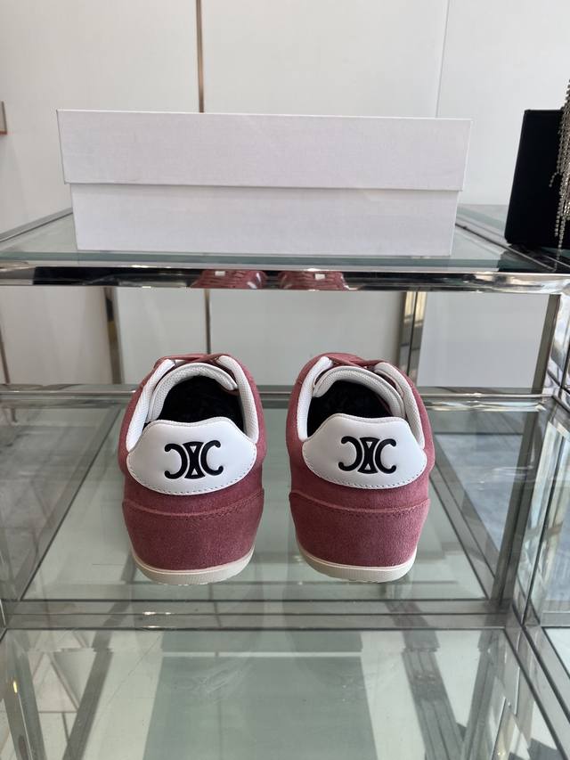 Celine 25Ss New Casual Shoes, German Training Sneakers. A pair of shoes full of street style, the latest large C design is fantastic! This shoe has its own unique design. The leather upper is very easy to care for. Ingenious and distinctive, the logos on the side and heel make it simple yet stylish. A perfect pair of white sneakers! Imported suede upper, breathable mesh lining, original TPU foam outsole. Sizes: 35-41, 40, 41 (custom made).