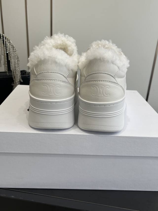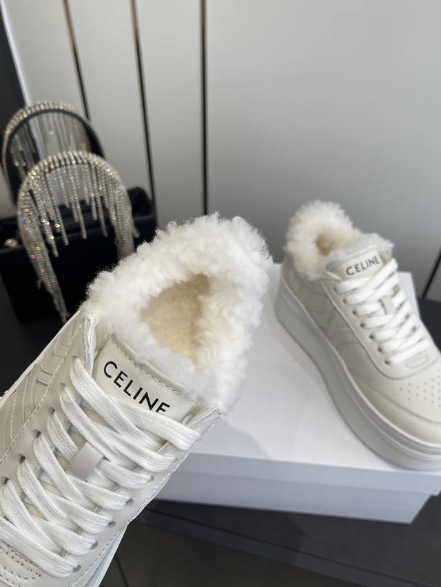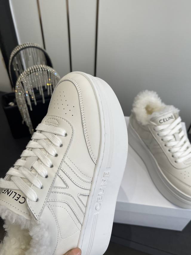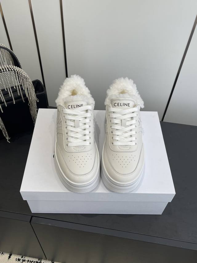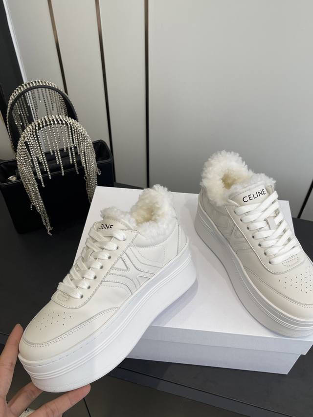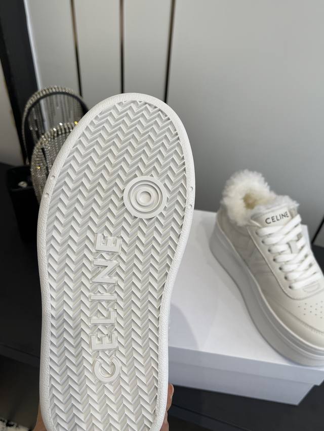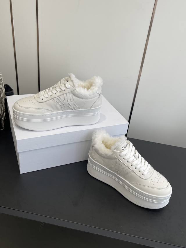 Celine 25Ss New Logo Lace-up Platform Wool-lined Casual Sneakers, White Sneakers DDD Simple and comfortable, clean and neat, height-enhancing and leg-slimming, whether worn alone or paired with wide-leg pants, high-street yet retro, let's be Celine girls together DDD Upper: Imported top-grain calfskin DDD Lining: Imported wool DDD Outsole: Original 1:1 molded outsole DDD Sizes: 35-40, 40 custom-made DDD