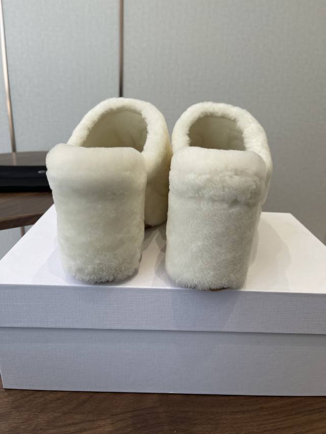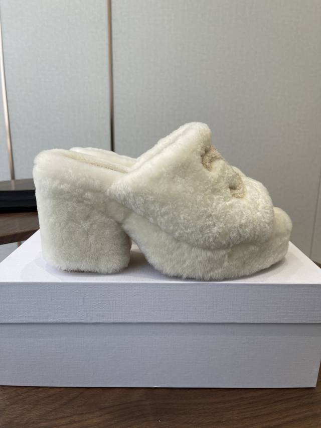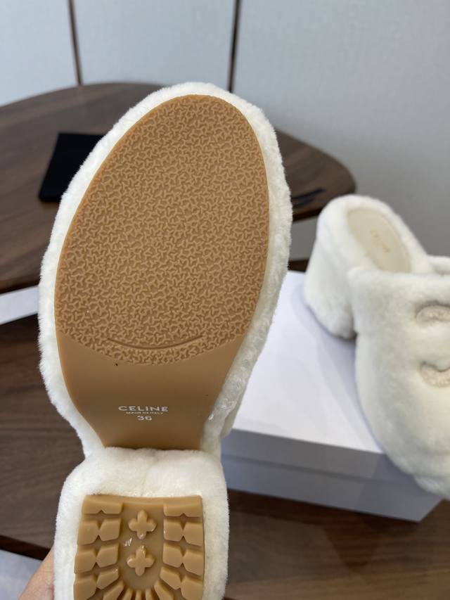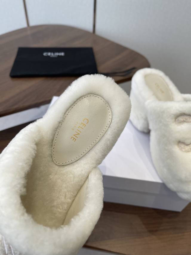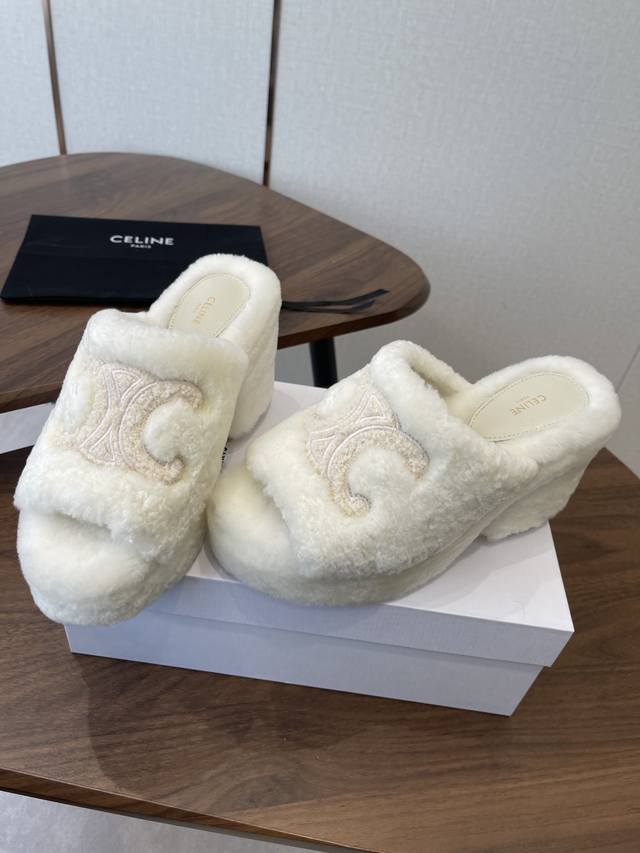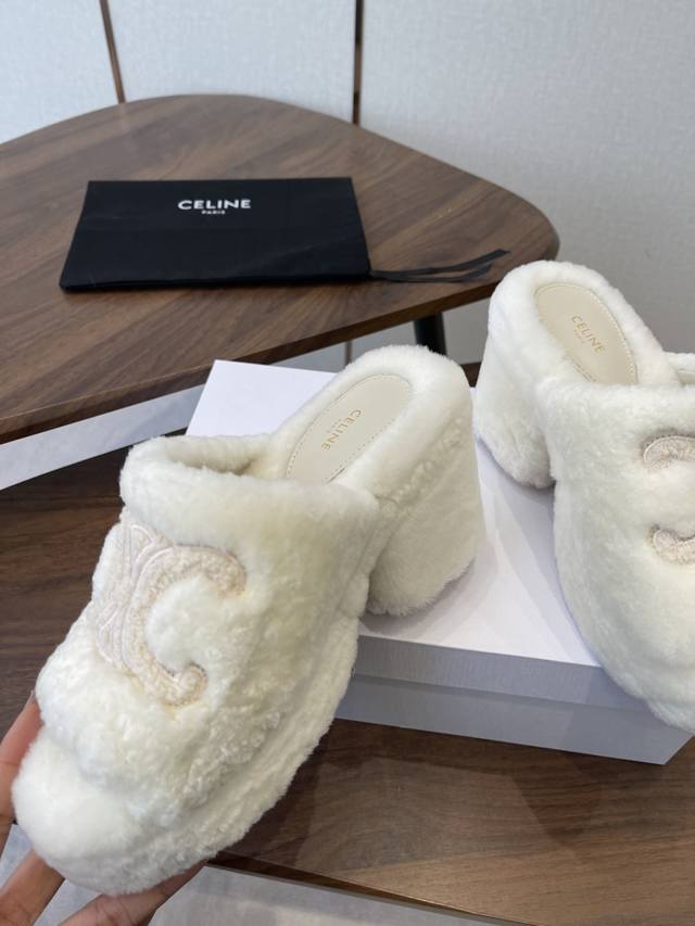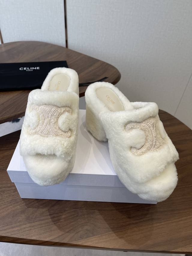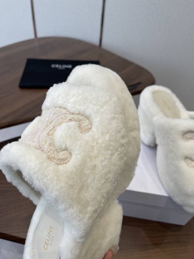 Celine 25Wf Arc de Triomphe Platform High-Heeled Fleece Slippers DDD Step into the world of Celine fleece slippers and encounter a meeting of comfort and luxury. DDD It cleverly blends the brand's classic design with cutting-edge fashion with its unique design. The iconic Arc de Triomphe is exquisitely sewn onto the upper. DDD The striking and flamboyant golden luster shines on the fabric, telling the story of Celine's profound heritage and trendsetting attitude. DDD The perfect combination of a 2cm platform and an 8cm heel is not only a secret weapon but also a powerful source of aura. The thick design of the platform cleverly distributes pressure, making walking easier and more comfortable, even for long periods of wear. The heel adds an elegant rhythm to every step, showcasing feminine charm with every gesture. DDD The rubber outsole has a clear texture and strong grip, allowing you to move steadily on both smooth and wet surfaces without fear of road conditions. The main body of the shoe is gently wrapped in soft fleece. DDD Like the warm sun in winter, every step is surrounded by warmth, gently conforming to your feet and driving away the cold. Its versatility makes it irresistible. Pair it with a simple dress for an instant elegant look, perfect for evening events and parties, making you the center of attention. Switch to jeans and a trendy top for a casual street style vibe. Perfect for going out, shopping, or just looking effortlessly chic. Made with custom-made Australian imported wool, featuring a custom-molded, non-slip outsole. Sizes: 35-39, 40, 41 (custom sizes available).