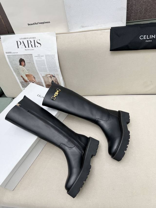 celine Arc de Triomphe stylish and versatile thick-soled boots! ! Made of suede with fade-resistant hardware buckles, top-grain cowhide, sheepskin lining, and a cannon-sole. Available in sizes 35, 40, 41, and 42. Made to order. No returns.
