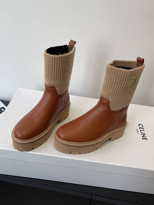 Celine Autumn/Winter New Style Yang Mi Same Style Flyknit Ankle Boots DDD Arc de Triomphe British Style Ankle Boots Simple, Stylish, Timeless, and Timeless Ddd A timeless classic in the fashion world. The retro British style lets you create a unique look DDD Imported cowhide leather, original mold, flyknit lining, sheepskin lining, outsole with welt combination DDD Sizes: 35-40, 40 custom-made DDD