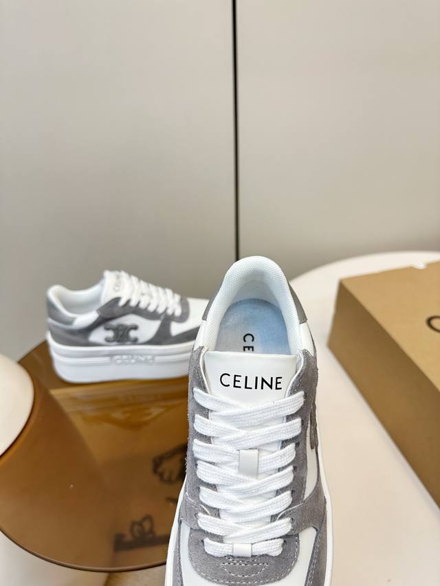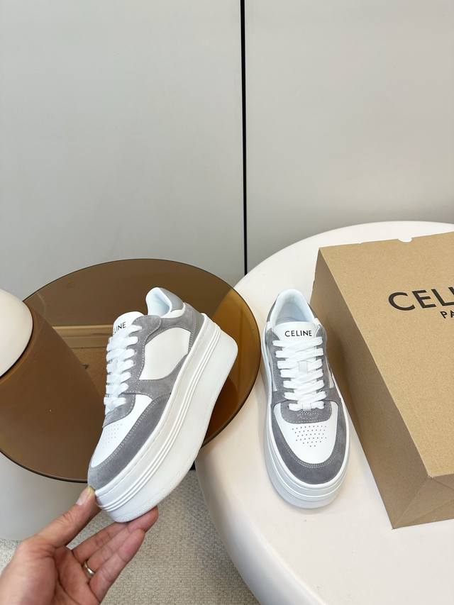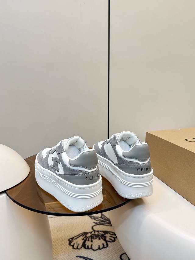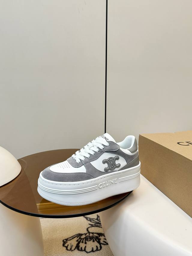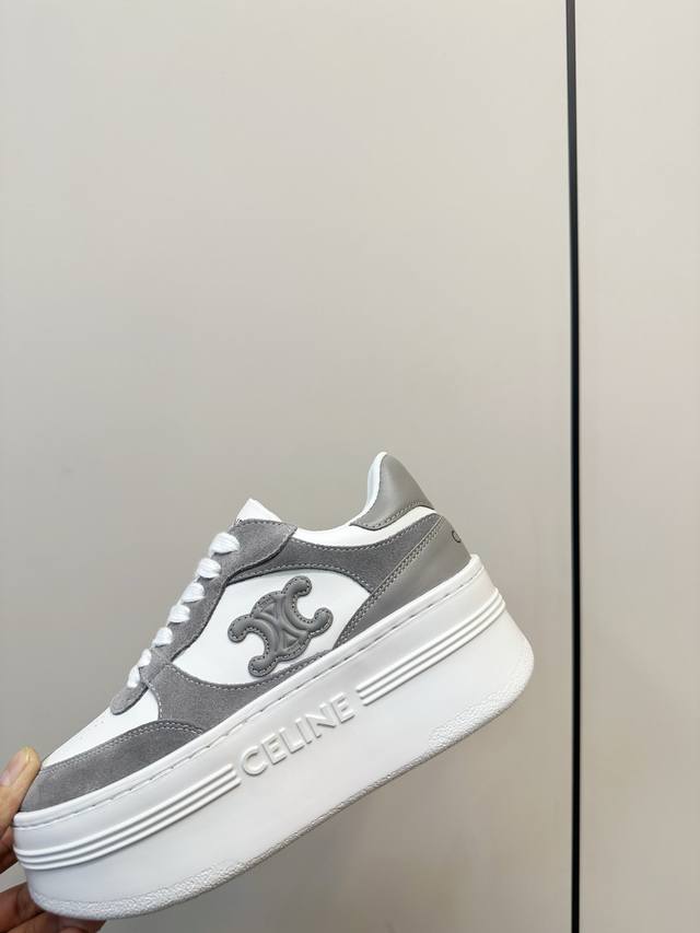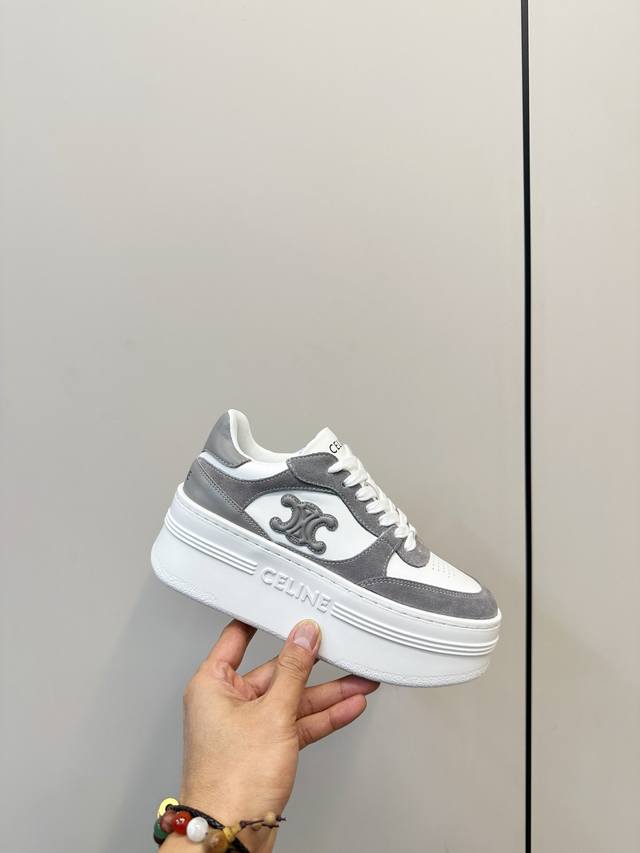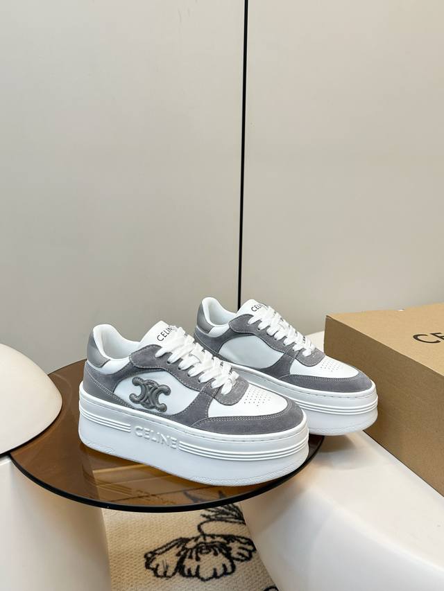 Celine Block Triumphal Arch Platform Sneakers (White) DDD Celine Block series platform sneakers, color-block design. The Arc de Triomphe logo on the side is highly recognizable. The platform sole adds approximately 5cm in height, a leg-lengthening miracle! Easily suitable for everyday commuting or casual wear, they look great with trousers or skirts, stylish and practical, a classic Celine style that's loved by many. Ddd Material: Calfskin and cashmere patchwork Ddd Breathable mesh lining Ddd Original molded rubber foam outsole Ddd Sizes: 35-40 40.41 Custom made DDD