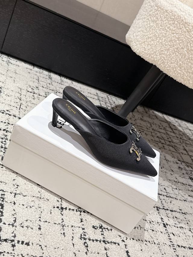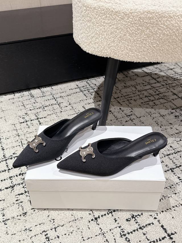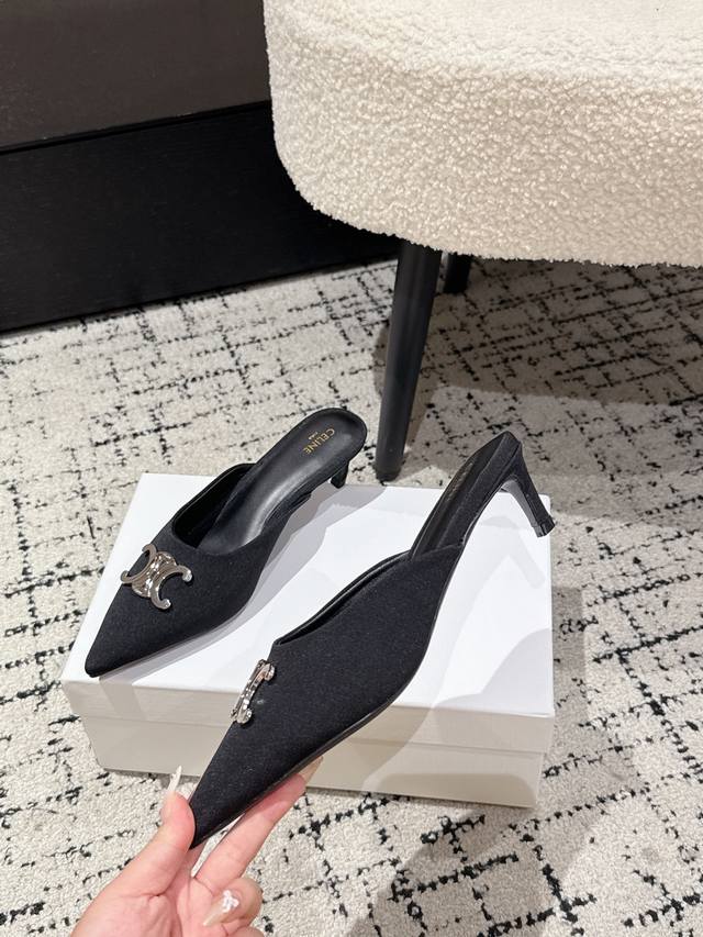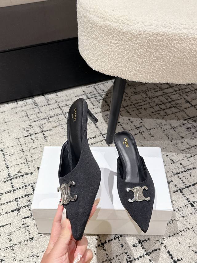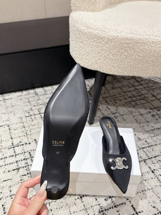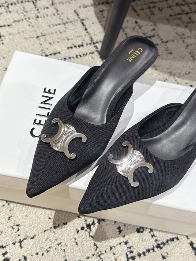 Celine Celine 25 new summer color Arc de Triomphe denim flat kitten heel sandals