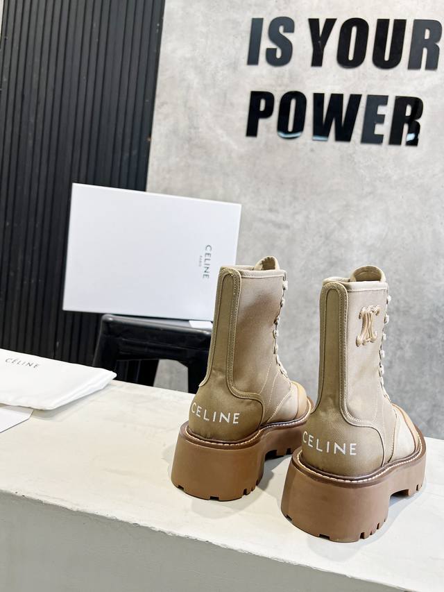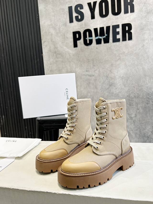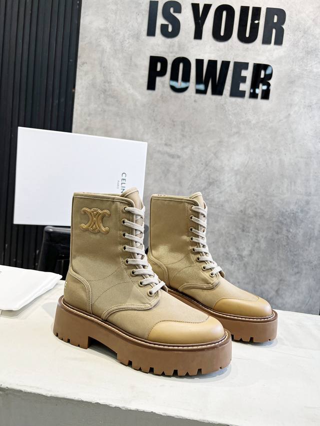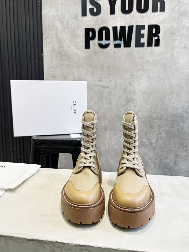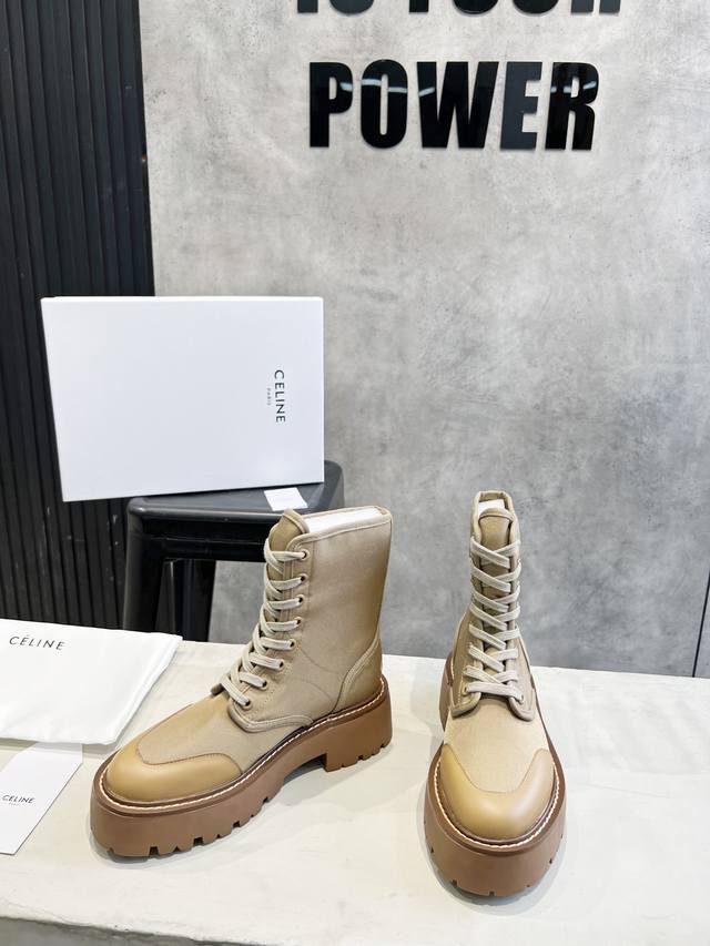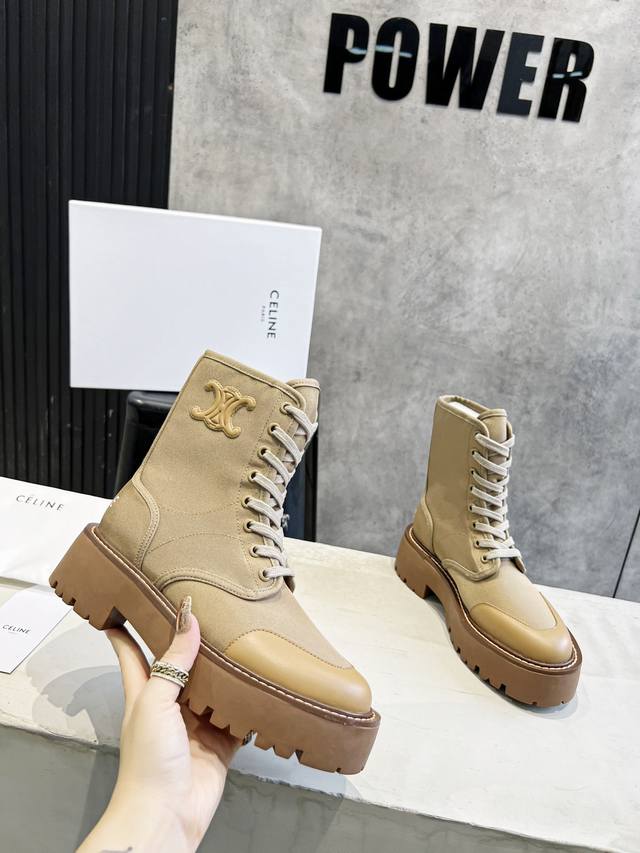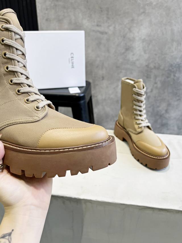Celine lace-up boots, Celine's current cool hook style is perfect. A super handsome pair of boots. For petite people, shoes that increase height and make legs look thinner are all good shoes. Haha. This pair is made of nylon fabric, so it is lighter than other boots. The thick sole is 5cm. Size 35-40