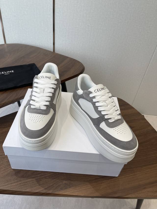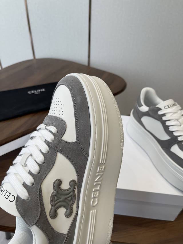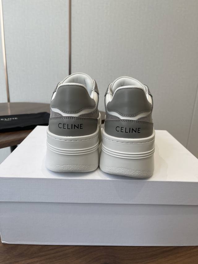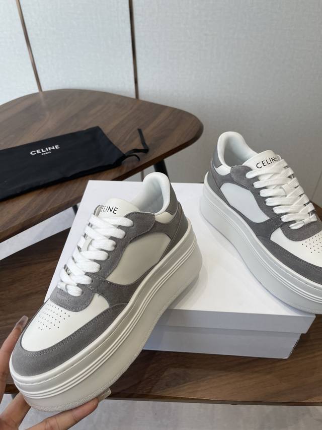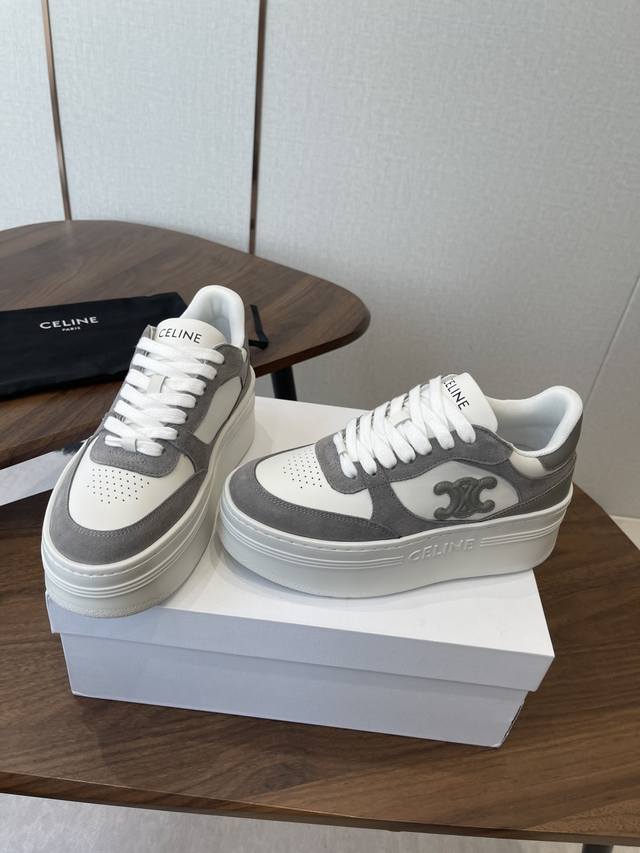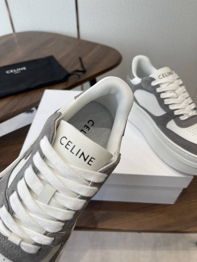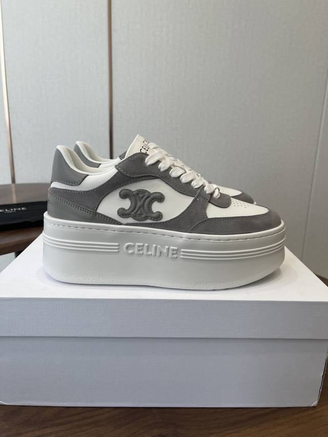 Celine Runner sneakers in new colors. The tongue and heel are adorned with the Celine logo. The platform platform sneakers feature the Celine logo embossed on the heel and sides. A new spring/summer 2025 women's style, featuring a simple and comfortable lace-up design, clean lines, and a leg-lengthening effect. Whether worn alone or paired with wide-leg pants, this high-street yet retro style is perfect for becoming a Celine girl. Upper: Original imported cowhide; Lining: Original lining; Outsole: Original molded TPU outsole. Size: #35-41 (40, 41 sizes are custom-made, no returns or exchanges).