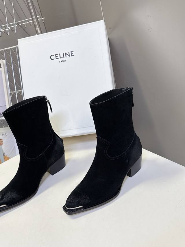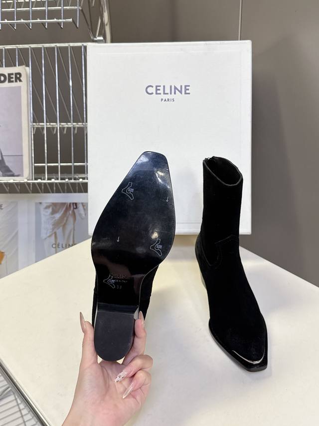 Celine's latest Fall/Winter fashion boots, runway style, fashion blogger's pick, highly recommended early autumn item! A must-have for a retro European and American style, featuring the Arc de Triomphe logo for a high-end and sophisticated look. Suitable for all seasons. Upper: Made of original custom calfskin; Insole: Silk cowhide lining; Outsole: Imported Italian thickened genuine leather; Heel height: 4.5cm; Size: 35-40 DDD