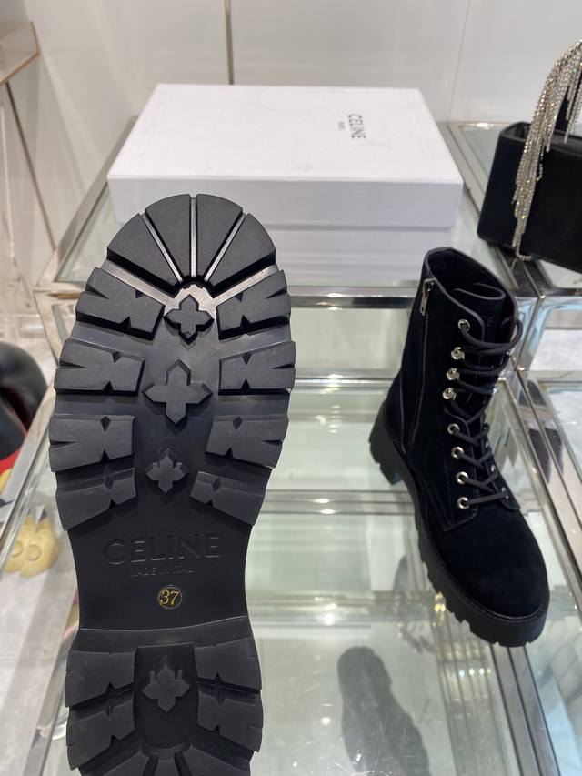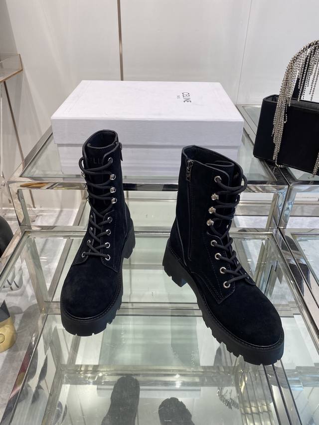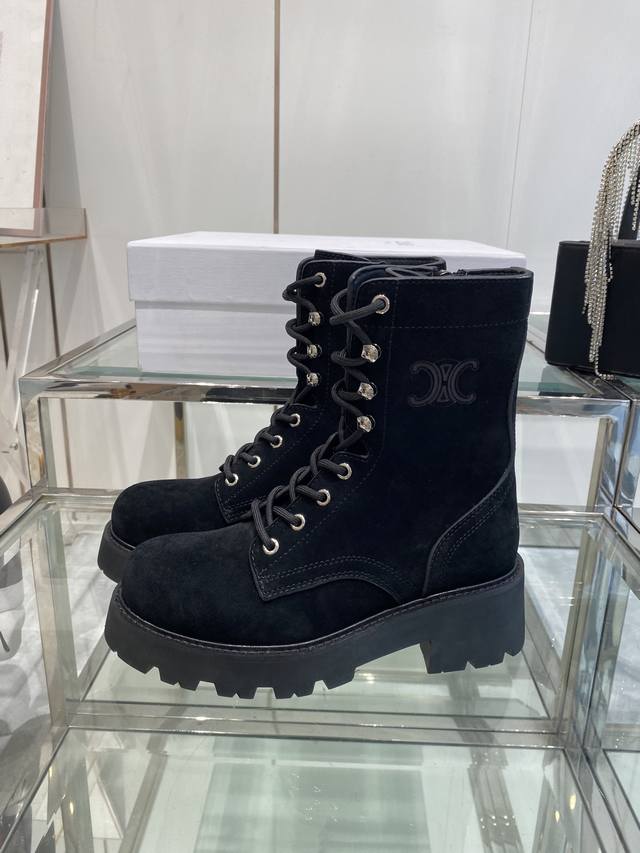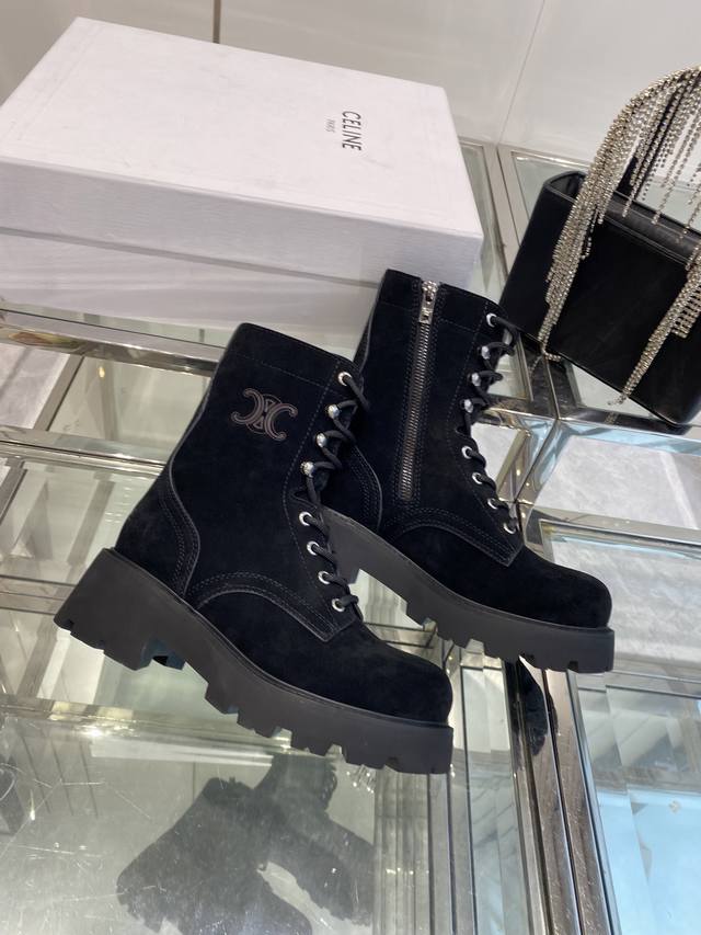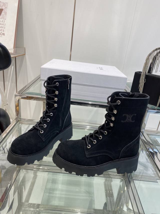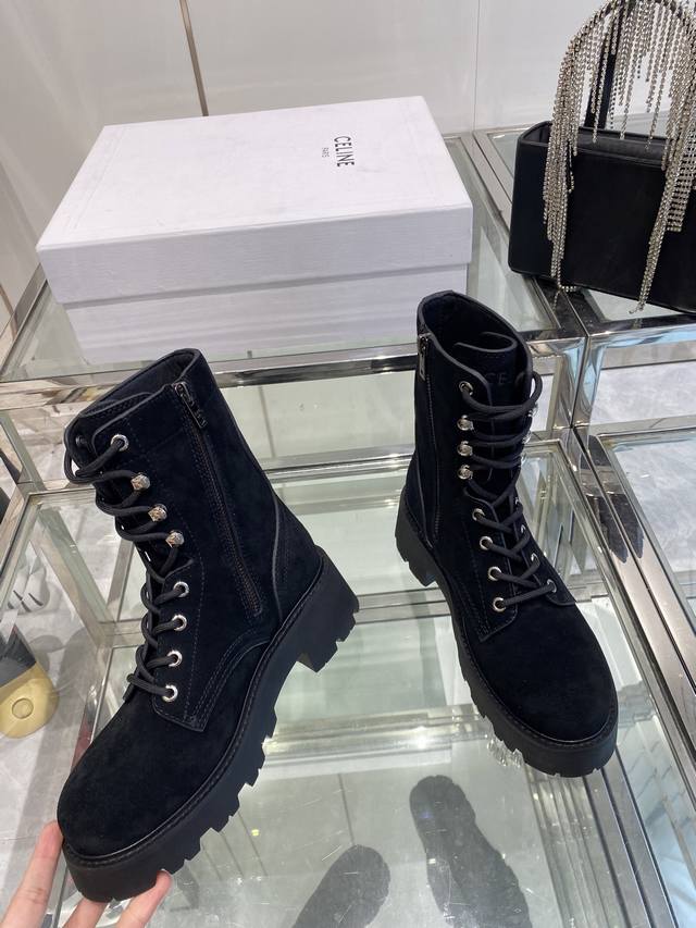 Celine's latest Fall/Winter runway Martin boots, worn by many celebrities and influencers, incredibly slimming and stylish, versatile. Made with soft imported Italian calfskin, original custom hardware, 5cm thick sole, for added height and leg slimming. Genuine leather lining, original mold, complete packaging. Sizes: 35-40, 40.41. Custom made.
