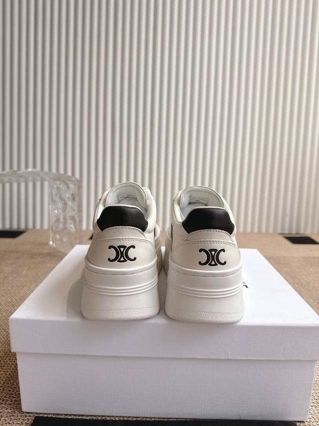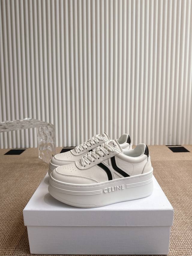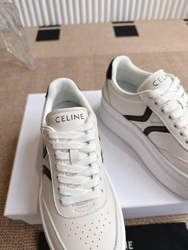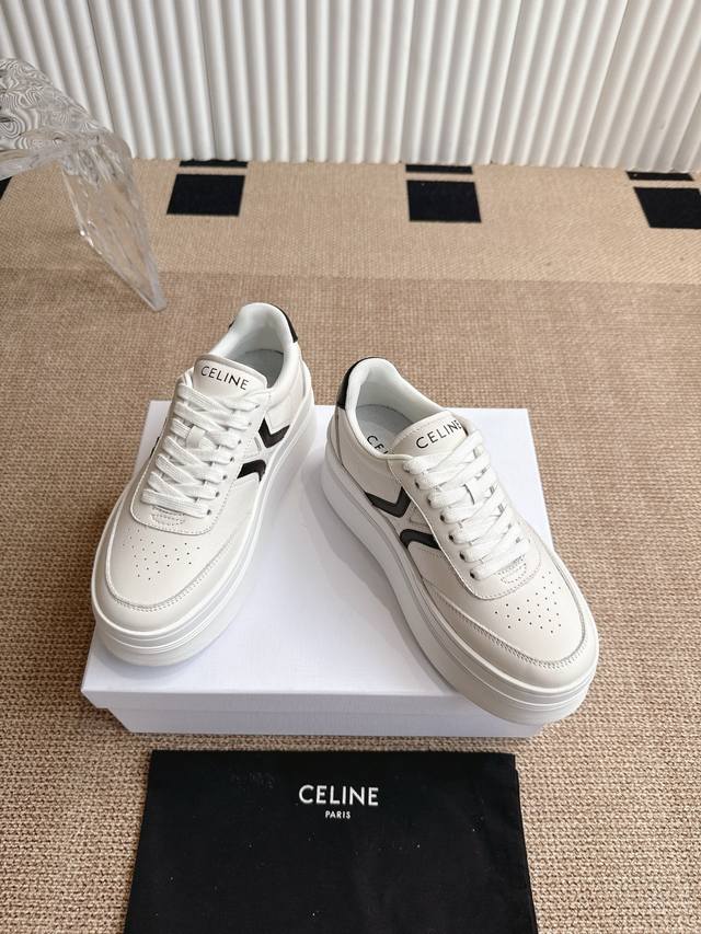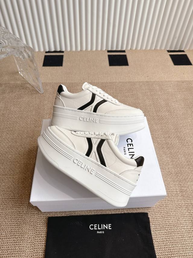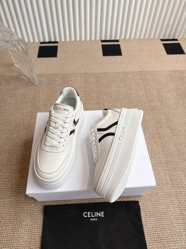 Celine's new Fall/Winter 25 collection features classic, thick-soled, casual white sneakers. One of the hottest items! Seen on Liu Wen, Yang Mi, and Lisa, these shoes are both gorgeous and practical. Their texture aligns with the seemingly contradictory aesthetic of casual glamour, while their leather goods and accessories, from bags to accessories, emphasize practicality within a luxurious aesthetic. A pair of these casual, street-inspired white sneakers is a must-have in any shoe closet, and this year's pair is the perfect choice. Unlike the ubiquitous Celin white sneakers, these shoes have their own unique design. The leather upper is easy to care for, creating a unique and distinctive look. The logos on the side and heel create a simple yet balanced look. A perfect pair of white sneakers. Sizes: 35-40. 40.41 Made to order, no returns or exchanges.