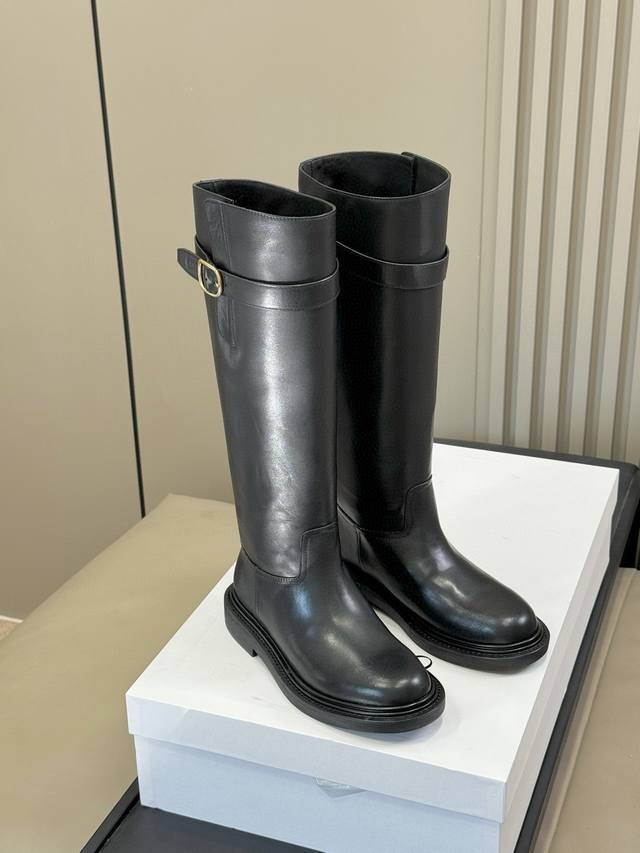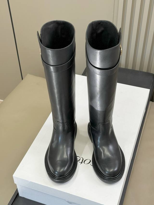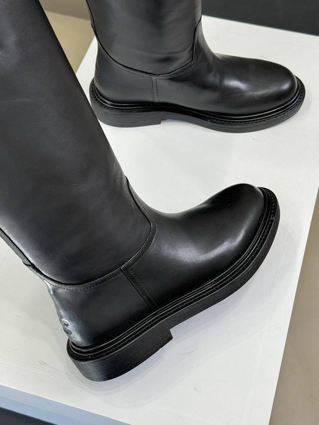 Celine's new Fall/Winter Arc de Triomphe boots. These boots are just below the knee, making them effortlessly comfortable! The small, chunky heel is a sure-footed choice, ensuring comfort is a breeze! The Arc de Triomphe logo is embossed for a simple yet refined look. Calfskin upper and Italian leather sole. Sizes 35-41.