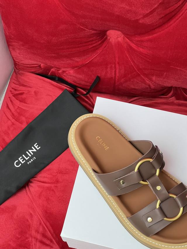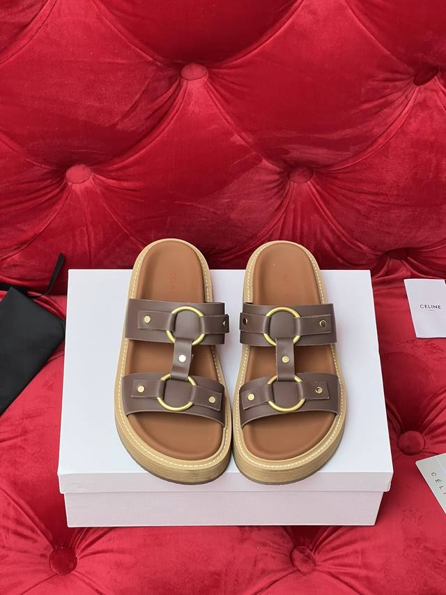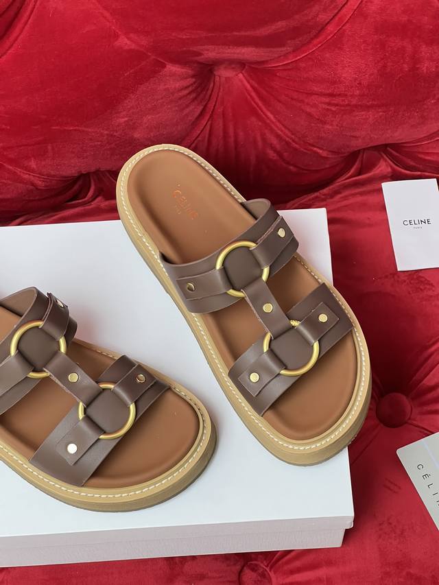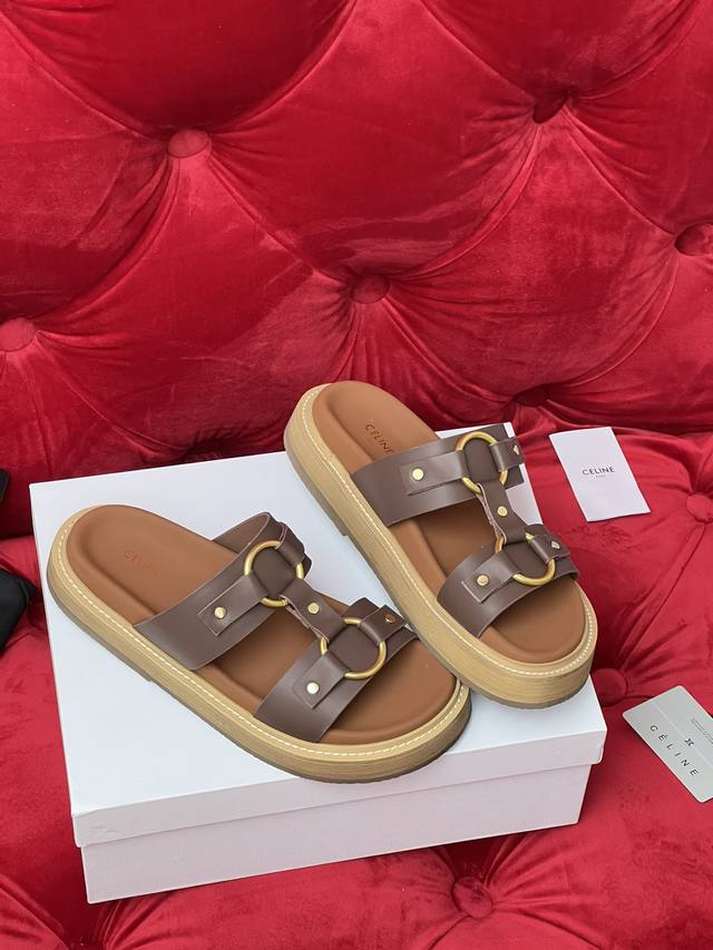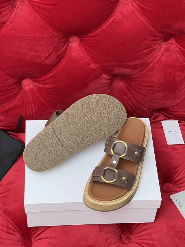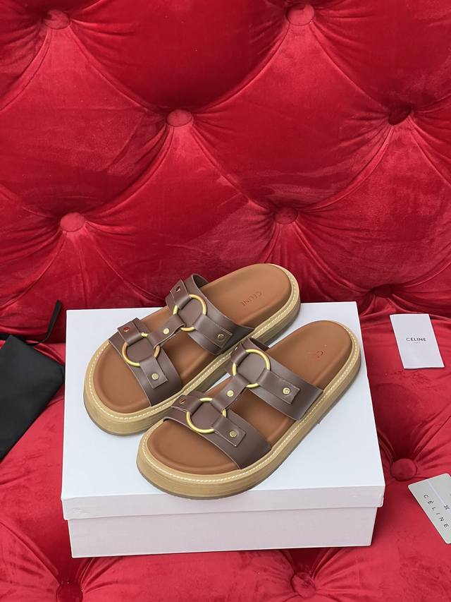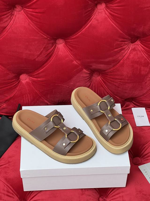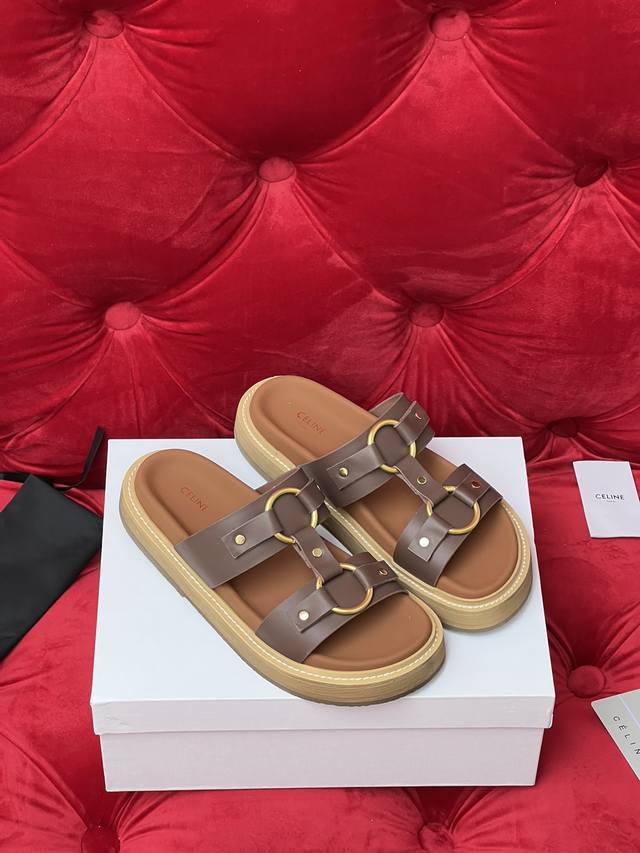 Exclusive Real Shot Top Version Celine Ss Spring/Summer New Arrival Triumph British Style Flat Micro-Label Sandals/Slippers. Simple, elegant, fashionable, timeless, and a classic that never goes out of style. The retro British style lets you exude a unique temperament. Material: 1:1 custom calfskin. Lining: Cowhide lining. Original mold, genuine leather outsole and welt. Size: 35-40. Size 40 is custom-made and non-refundable.
