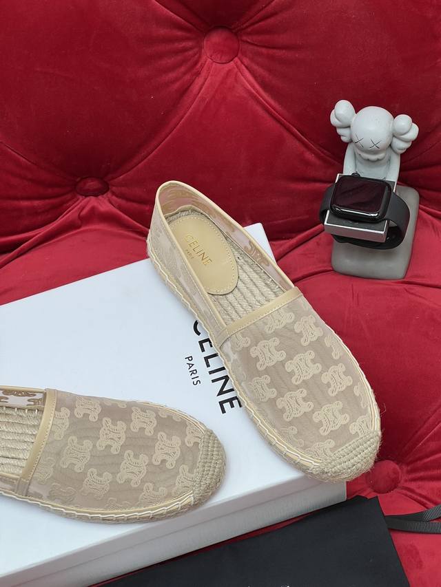Exclusive Real Shot Top-Tier Celin* Fisherman Shoes, Top-Quality Authentic Product, 25Ss Early Spring New Celin* Sheepskin Letter Fisherman Shoes Series, Hot Selling Single Shoes, Looks Great on Foot! Purchased Authentic Original Build, Top-Tier Authentic Product Version! Upper: 3D Mesh Embroidery Lining: Water-Dyed Sheepskin Sole: Original Hemp Rope Braid Size: 35-41, 40.41 Made to Order, No Returns or Exchanges