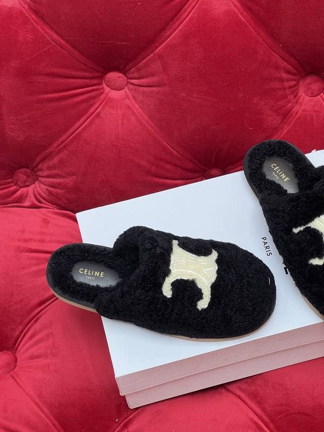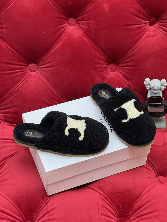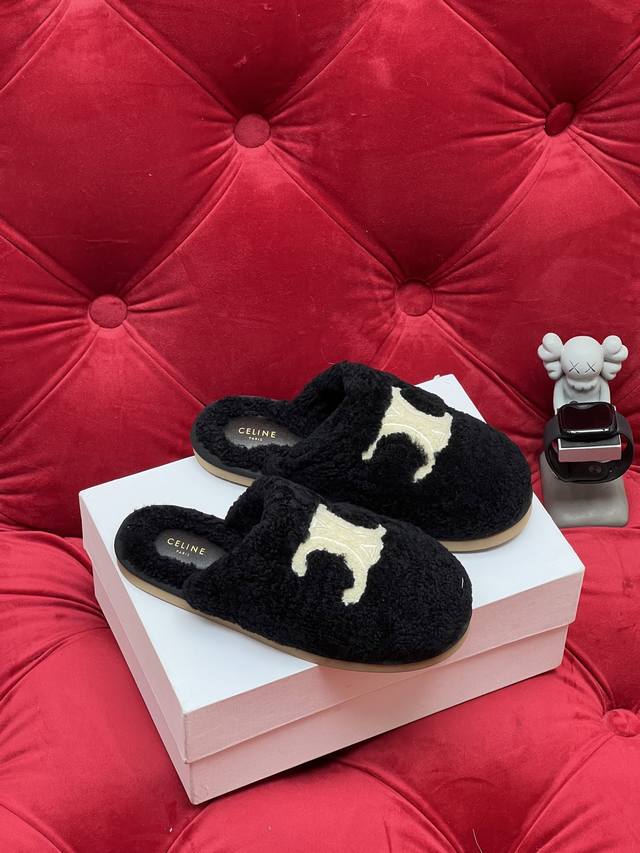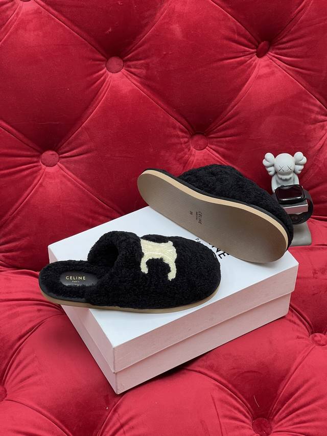 Exclusive Real Shots Top-Tier Version Celine 2025Ss New Wool Slippers. The fluffy wool is made from imported European Grade A wool. We guarantee the same quality as the original. Multiple colors available! A must-have for home. Upper: Pure wool. Insole: Sheepskin. Sole: Original outsole, wear-resistant and slip-resistant. Size: 35-41. Size 41 is custom-made, no returns or exchanges.