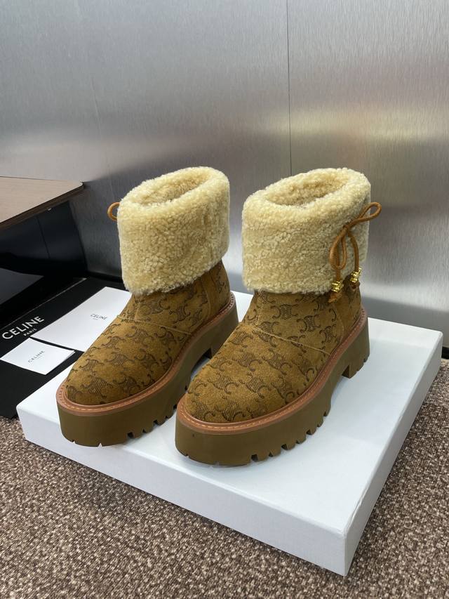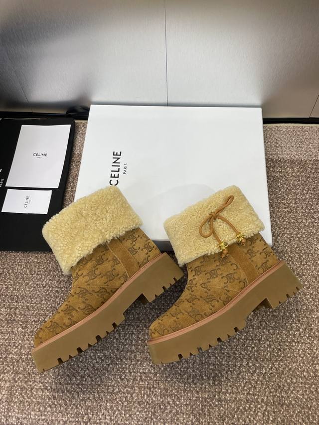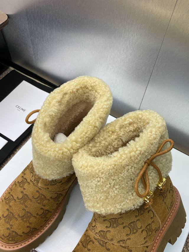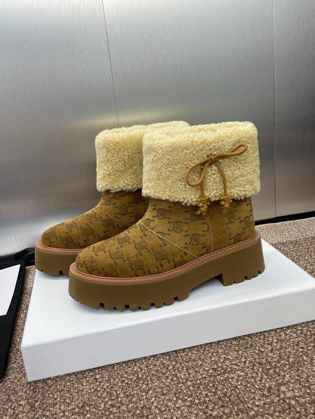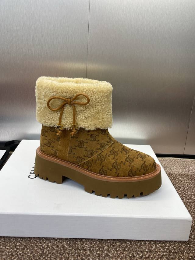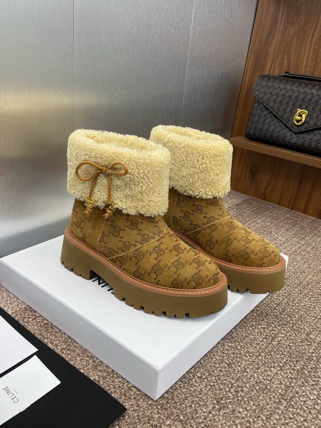 Factory Price P Celine 2025 Autumn/Winter New Tassel Bow Snow Boots for Women, C