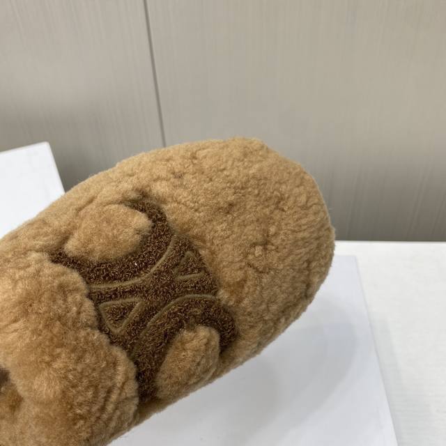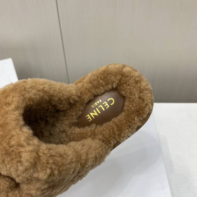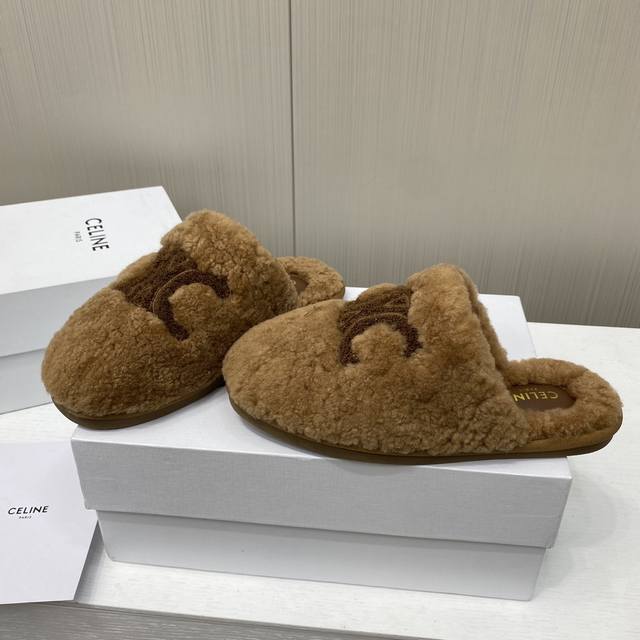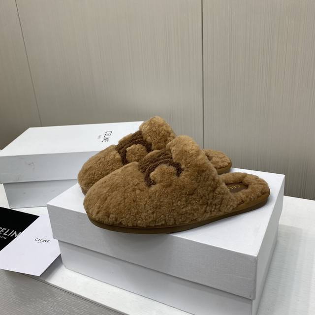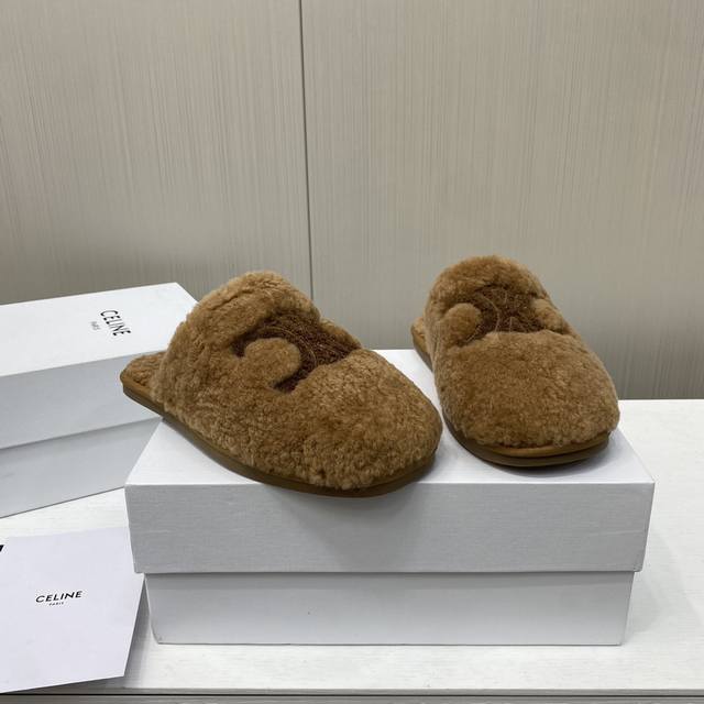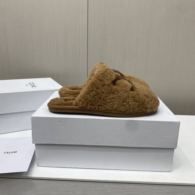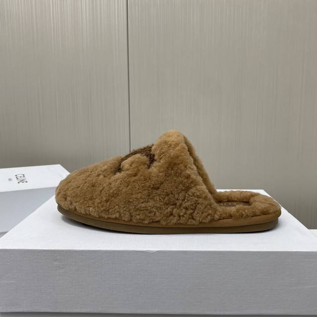 Celine 25Ss new autumn and winter wool closed-toe slippers