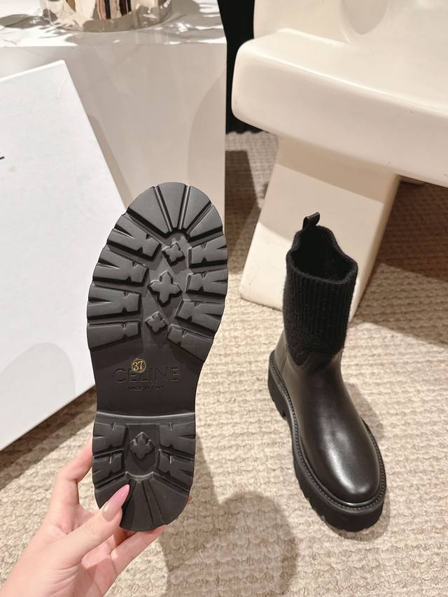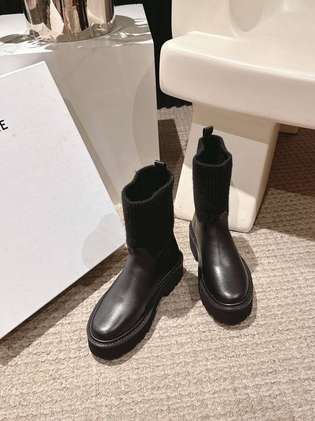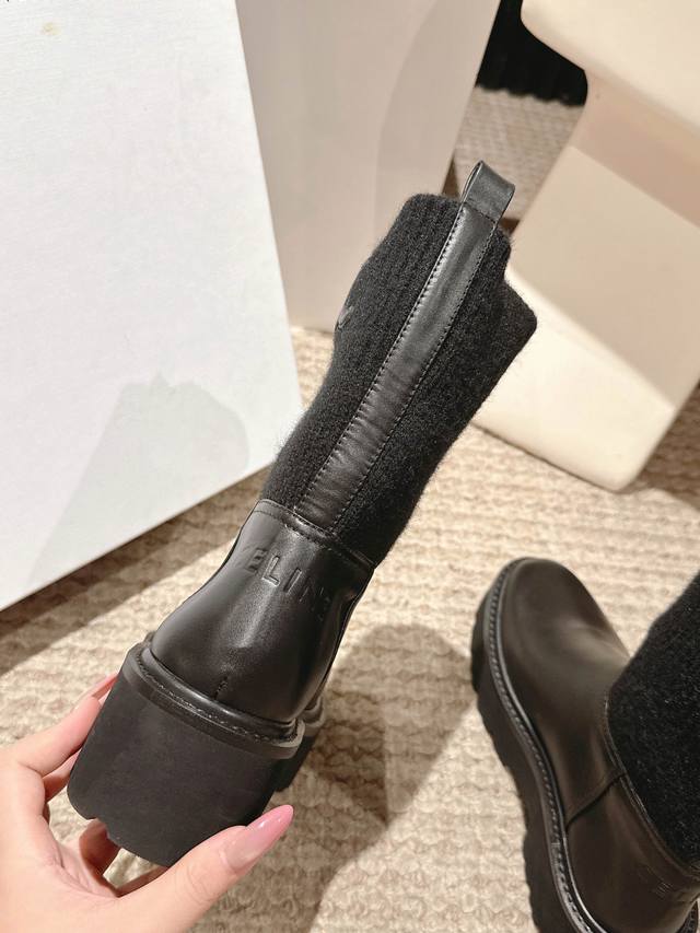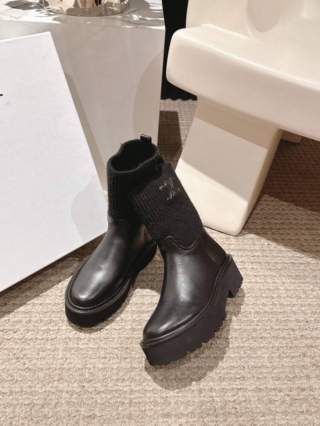 Factory Price P Celine New Classic Arc de Triomphe Wool Socks Thick-Soled Cowhide Ankle Boots