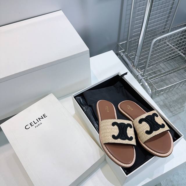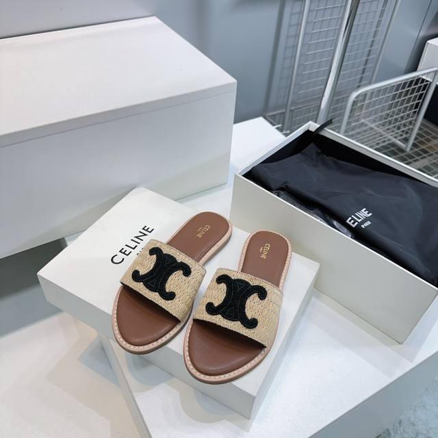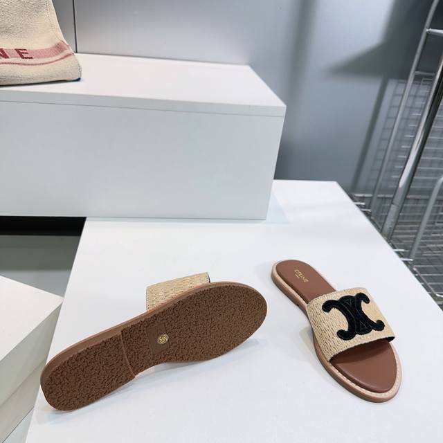 Spring/Summer 25 Arc de Triomphe's new simple straw casual flat slippers. This season's Celine has made me fall in love with them all over again. There are so many beautiful shoes this season! These sandals are truly versatile! The simple design with the classic logo as an embellishment is particularly eye-catching and easy to match!