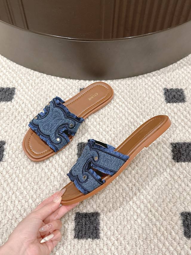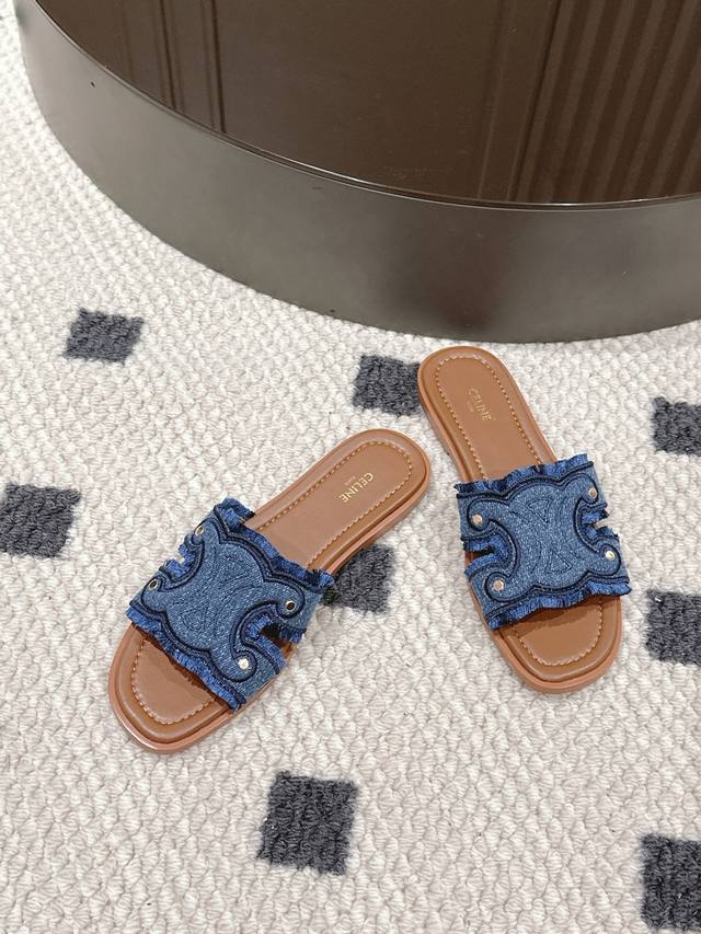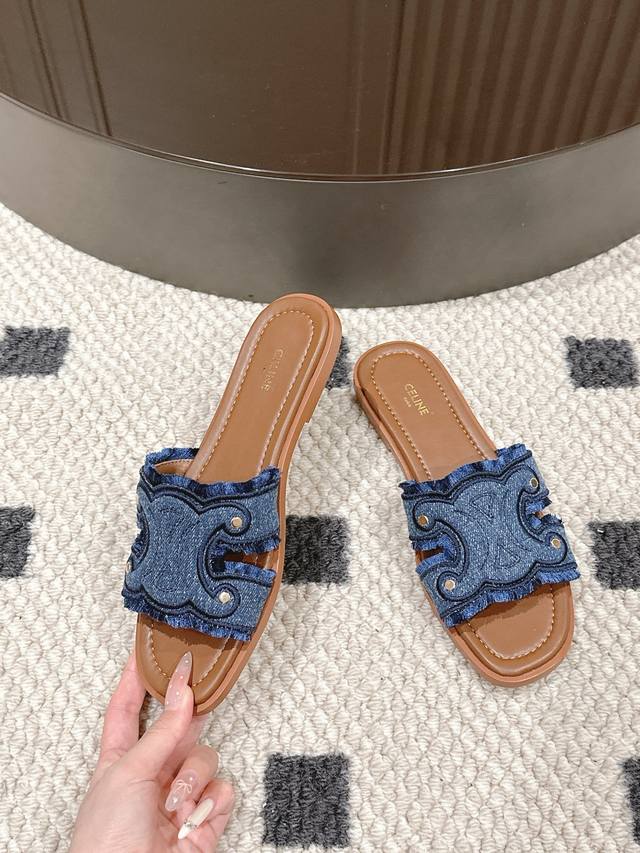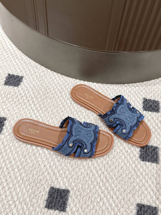 Genuine leather outsole. Sizes 35-40 and 41 are custom-made. These Celine denim tassel slippers