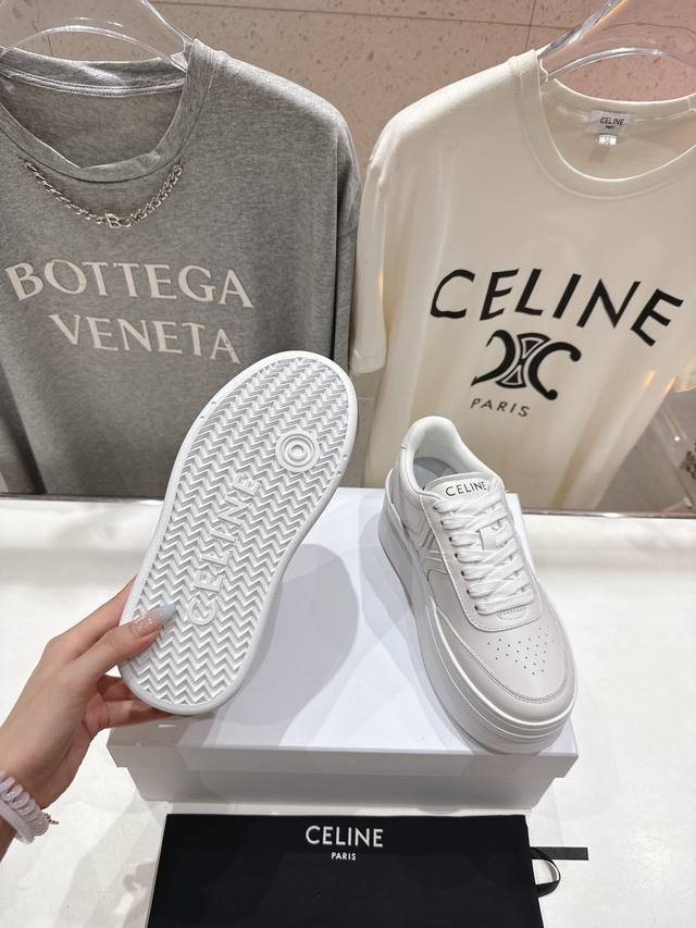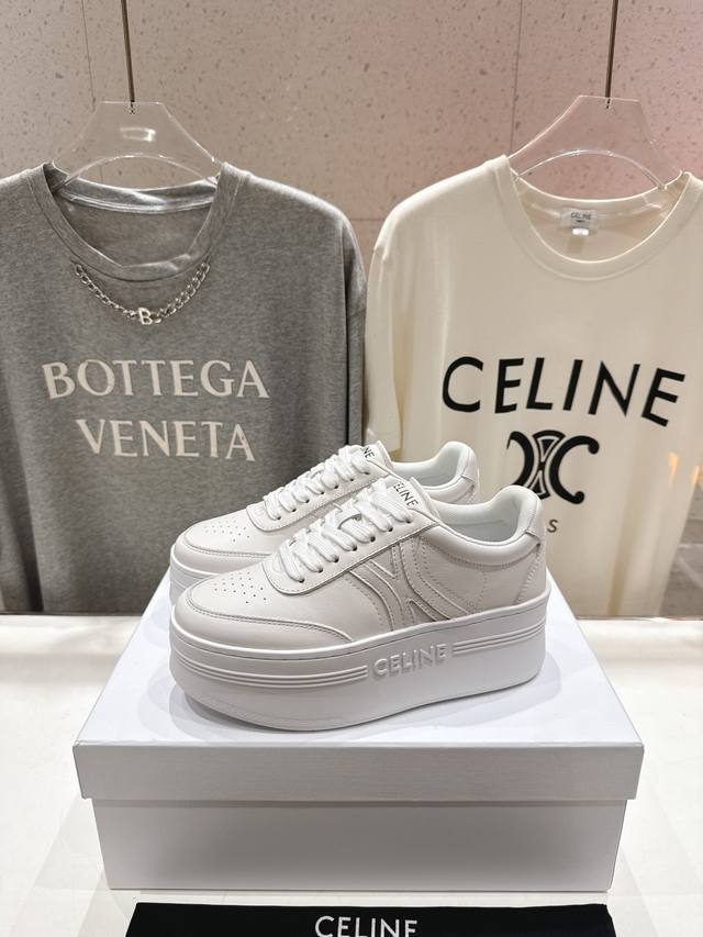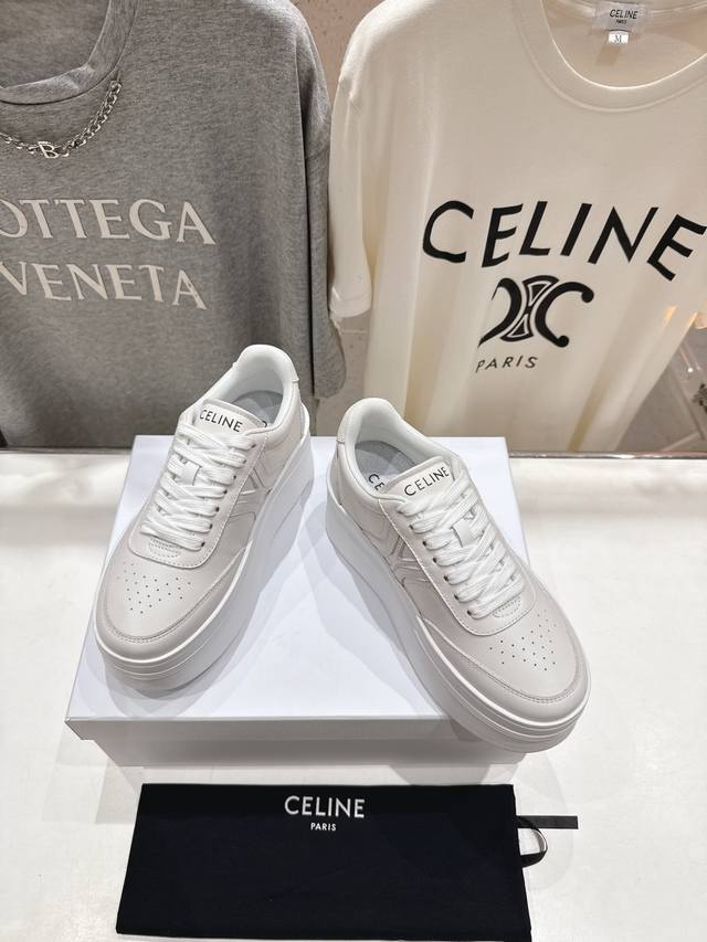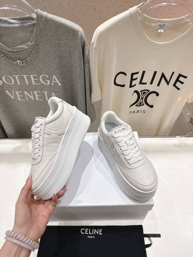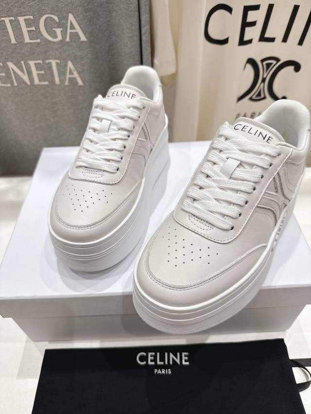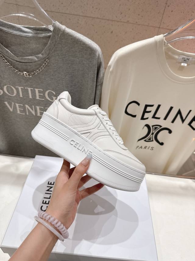 Celine* Celine 2025Ss new logo lace-up thick-soled casual shoes white shoes