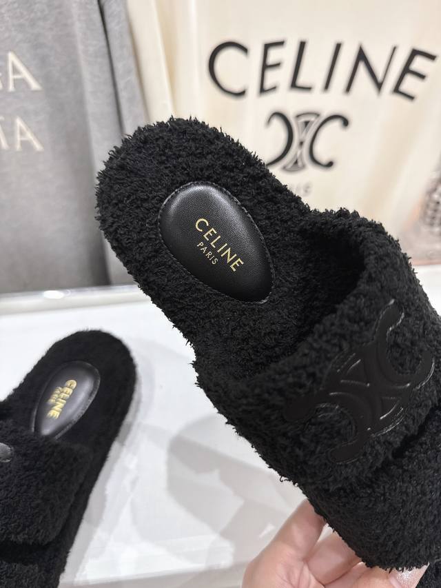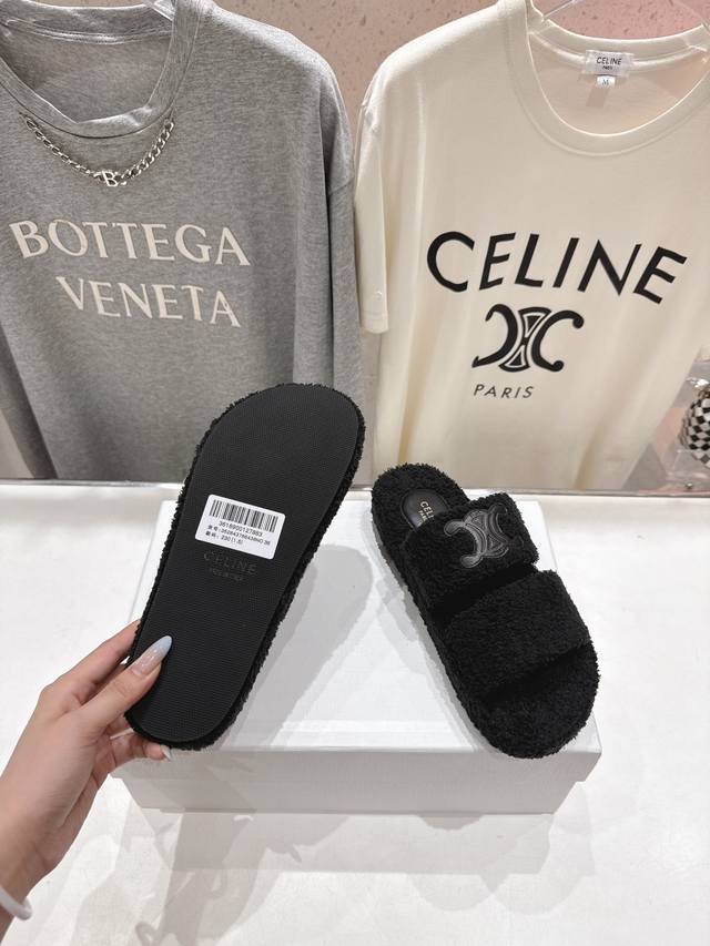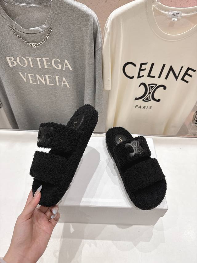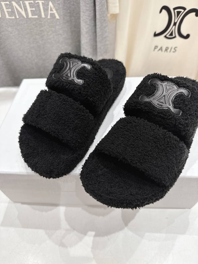 Celine 2025Ss new warm home Arc de Triomphe furry slippers