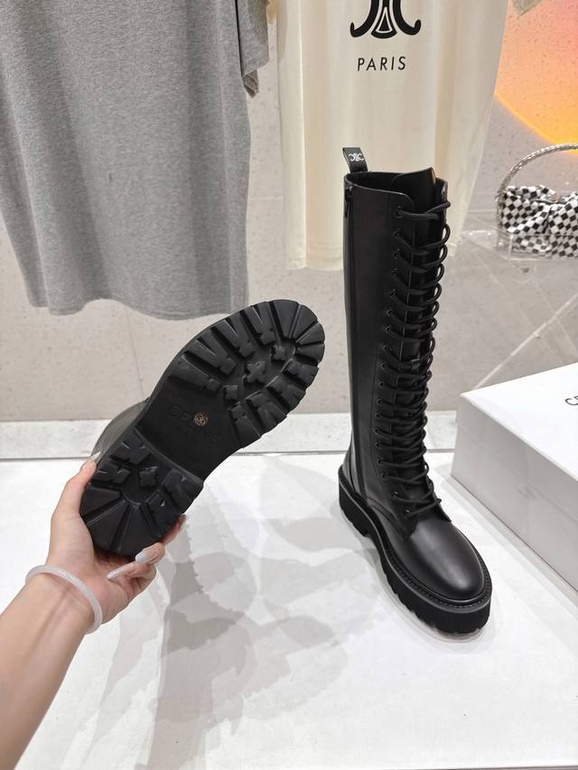 Celine* Celine F035 2025Ss autumn/winter new handsome British-style mid-calf boots and long boots.
