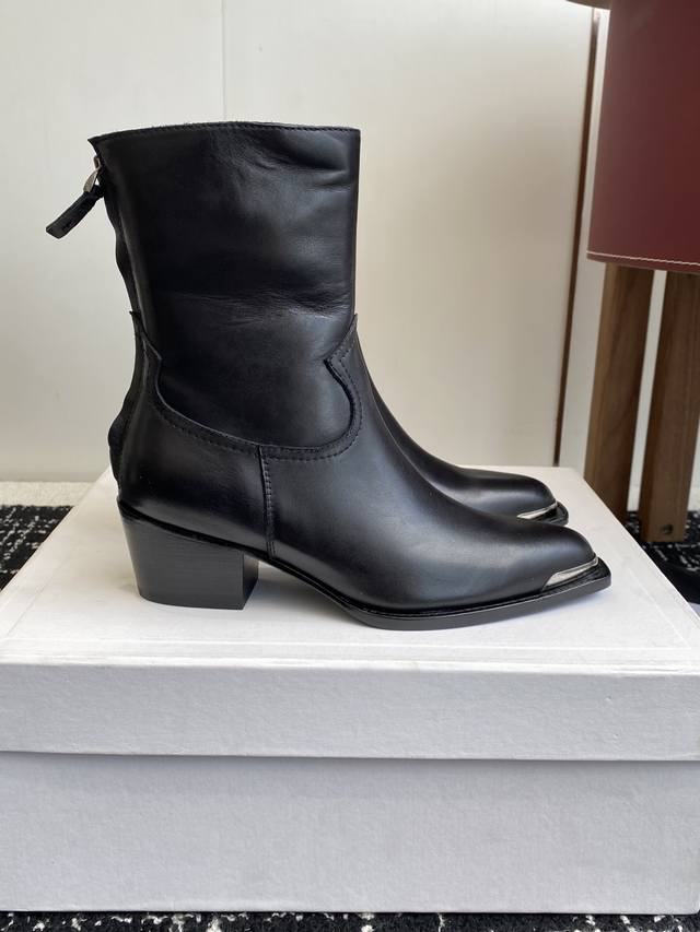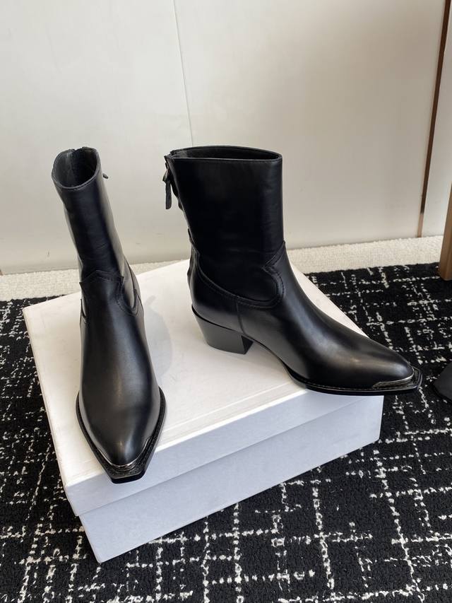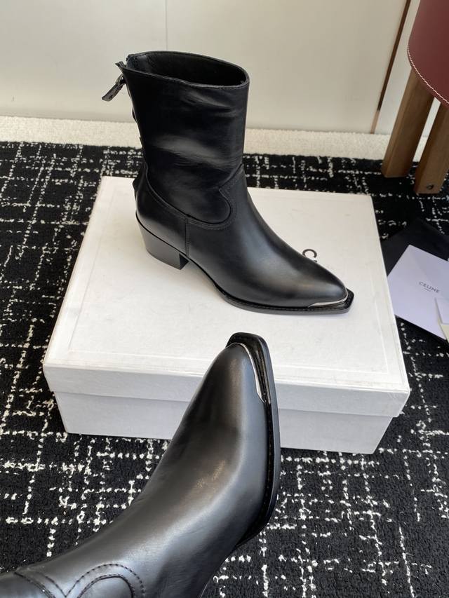 High-quality cowhide leather Celine 25Ss Fall/Winter new retro chunky heel Chelsea pointed toe metal buckle ankle boots. Celine has so many great styles this season, like these military boots with a biker vibe. The boot shaft design is especially noteworthy