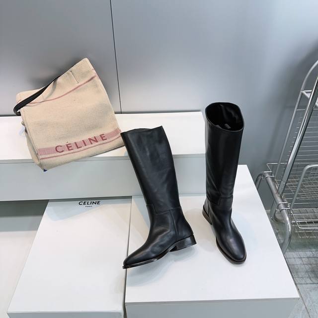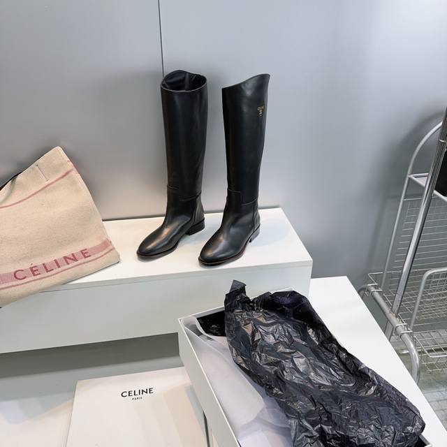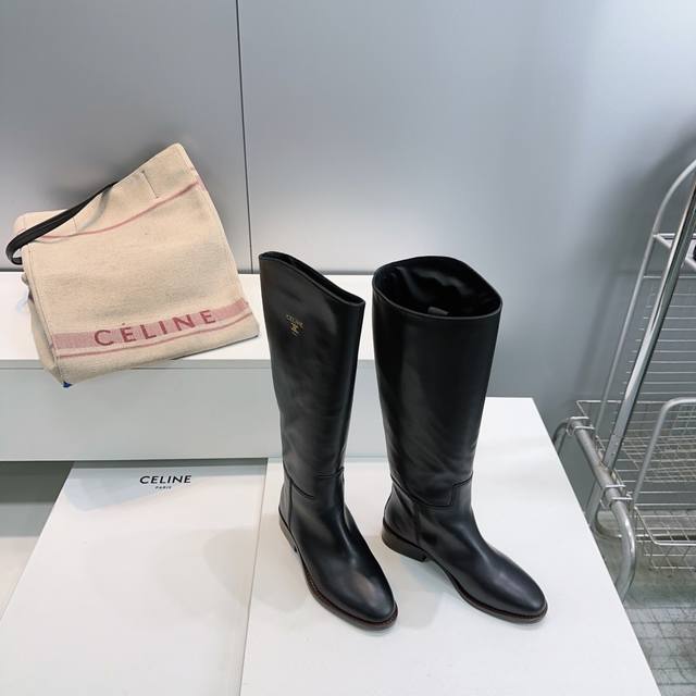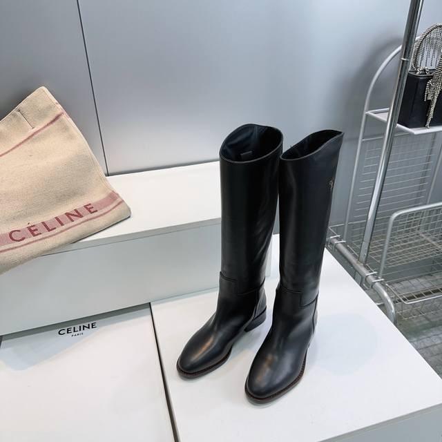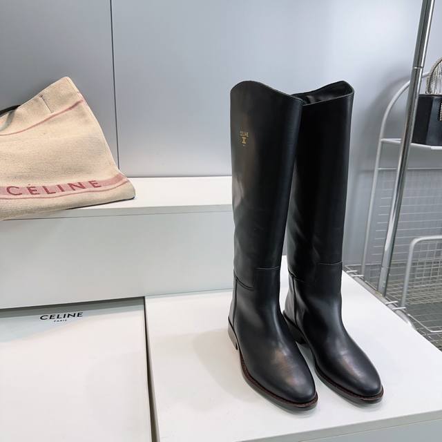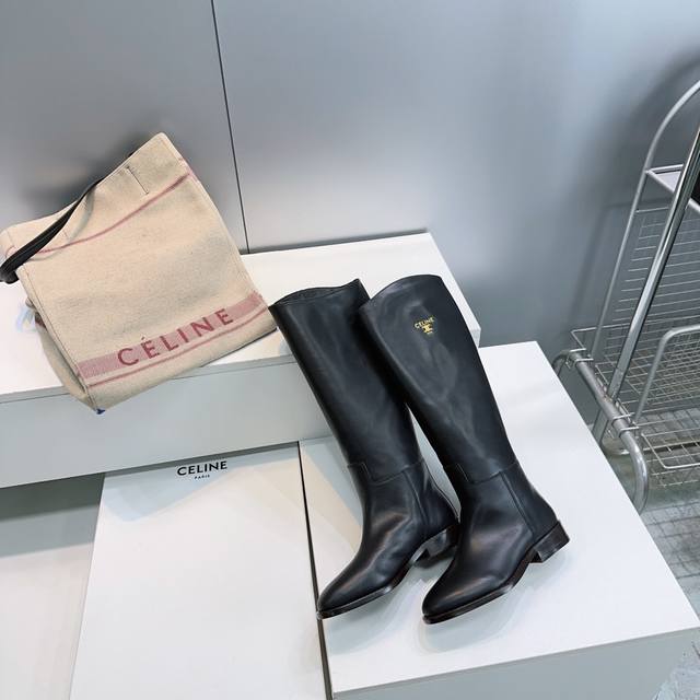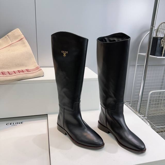 High-quality factory direct! Top quality Celine 25Ss Fall/Winter new arrival Arc de Triomphe platform long boots, straight-leg riding boots! This season has so many great styles, like these military boots with a biker vibe. The simple slip-on design is flattering for all leg shapes, instantly making your legs look longer and slimmer! Absolutely stunning! The Arc de Triomphe logo is sophisticated and classy! The upper is made of calfskin, the lining is imported sheepskin, and the outsole is made of thick Italian imported genuine leather. Sizes: 35-40. Sizes 40 and up are non-refundable. Comes with original packaging.