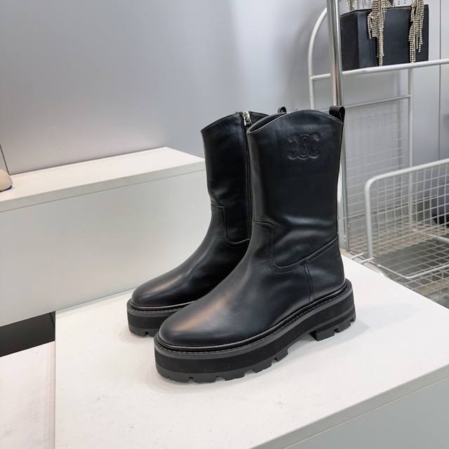 High-quality factory production! Top-quality Celine 25Ss Fall/Winter Triumph Classic Retro Platform Lace-up & Buckle Martin Boots! A series of trendy items exclusively customized for goddesses this fall and winter! The lace-up platform design provides height, the cut is superb, and these trendy shoes are fashionable and stylish this season. A versatile and simple style, perfect for any outfit! The upper is made of imported calfskin, the insole is made of sheepskin, and the outsole is made of original molded, non-slip, and wear-resistant rubber! Sizes: 35-42, 40, 41, 42. Custom orders are non-refundable and non-exchangeable. Comes with original packaging.