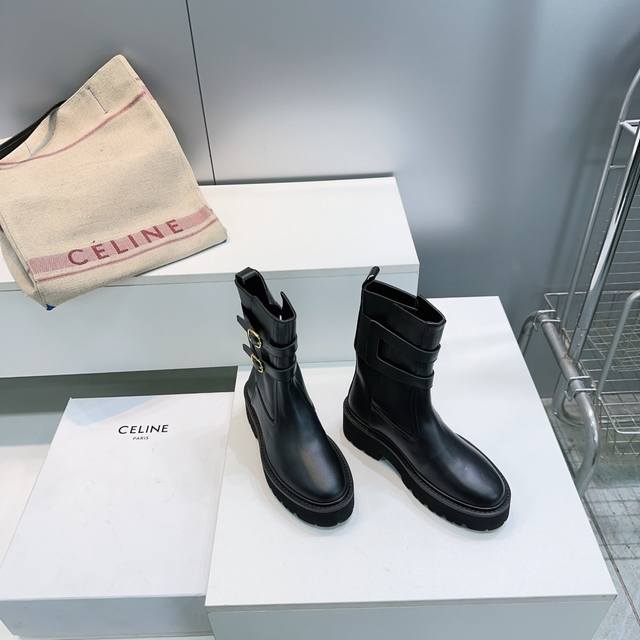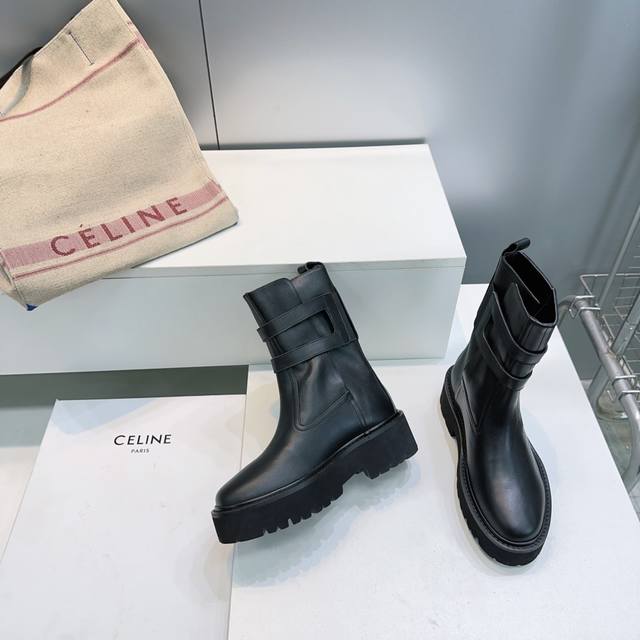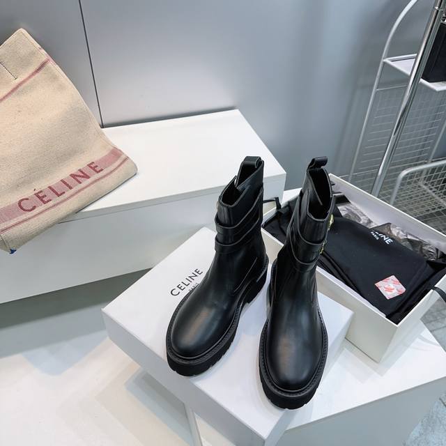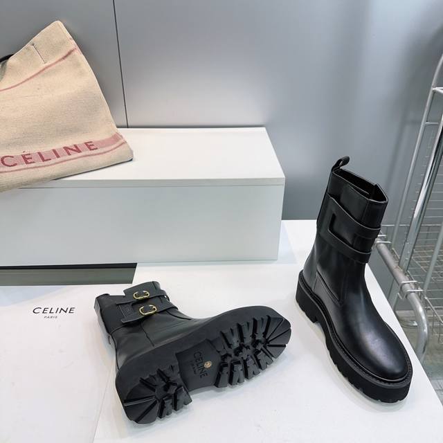 High-quality factory production! Top-quality Celine 25Ss Fall/Winter Triumph Classic Retro Platform Lace-up & Buckle Martin Boots! A series of trendy items exclusively customized for goddesses this fall and winter! The lace-up platform design provides height, the cut is superb, and these trendy shoes are fashionable and stylish this season. A versatile and simple style, perfect for any outfit! The upper is made of imported calfskin, the insole is made of sheepskin, and the outsole is made of original molded, non-slip, and wear-resistant rubber! Sizes: 35-42, 40, 41, 42. Custom orders are non-refundable and non-exchangeable. Comes with original packaging.