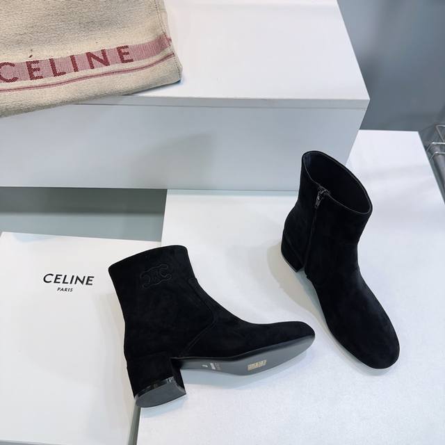 High-quality factory short! Top quality Celine 25Ss Fall/Winter new arrival Arc de Triomphe retro simple patent leather chunky heel short boots, long boots, straight riding boots! This season has so many great styles, like these military boots with a biker vibe. The simple slip-on design is flattering for all leg shapes, instantly making your legs look longer, super slimming and versatile! Absolutely stunning! The Arc de Triomphe logo is classy and sophisticated! The upper is made of imported cow suede, the lining is imported sheepskin, the heel height is approximately 5.5cm, and the outsole is made of imported Italian genuine leather. Sizes: 35-40. Sizes 40 and above are non-refundable. Comes with original packaging.