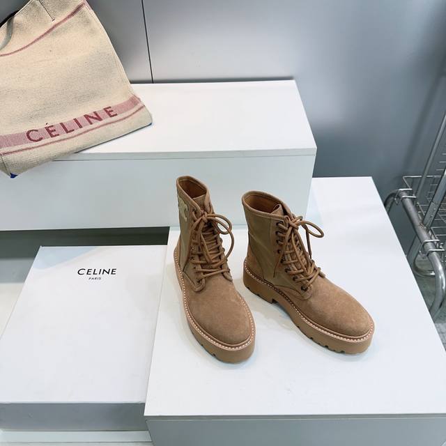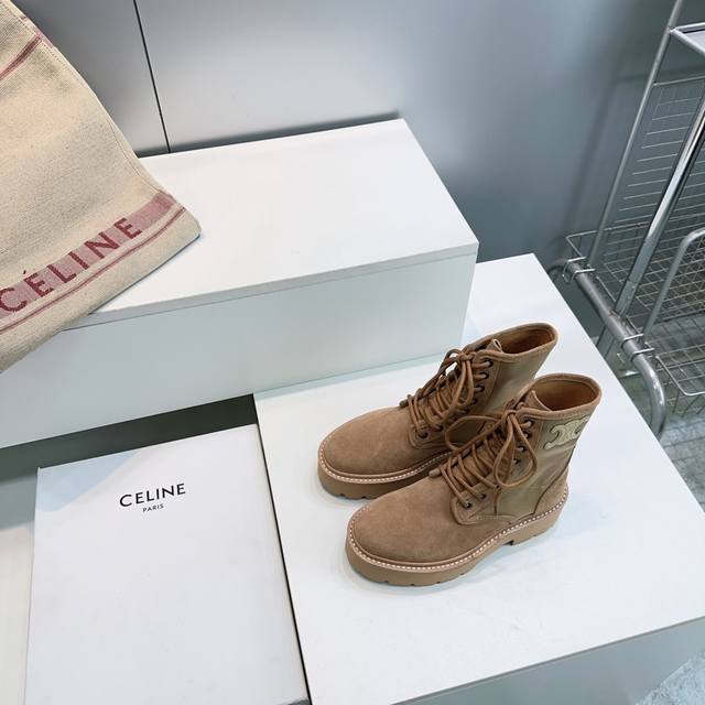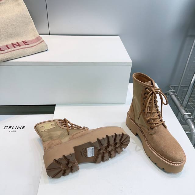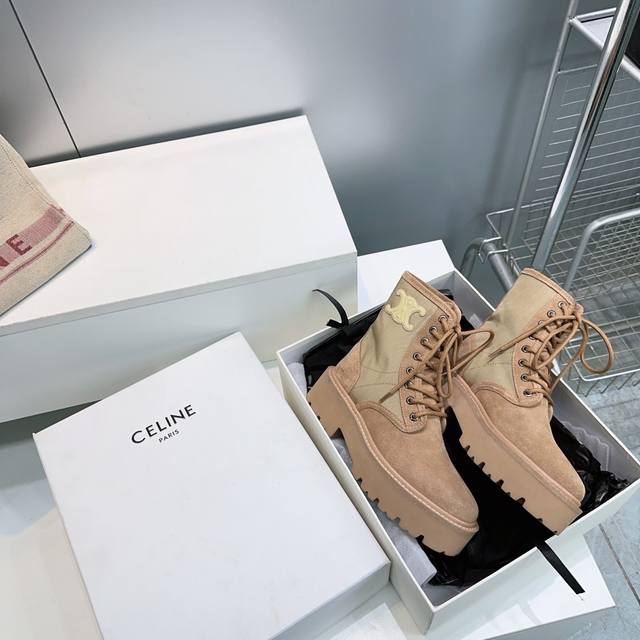 High-quality factory! Top-quality Celine 25Ss Fall/Winter Arc de Triomphe Classic Retro Platform Lace-up Martin Boots! A trendy item exclusively customized for goddesses this fall and winter! The lace-up platform design provides height, the cut is superb, and it's a fashionable and trendy shoe that's all the rage this season. It's a versatile and stylish piece that can be both sweet and edgy, a perfect accessory! The upper is made of imported high-density canvas combined with cow suede, the inner lining is canvas, the insole is made of sheepskin, and the outsole is made of original molded non-slip rubber! Sizes: 35-42, 40, 41, 42. Custom orders are non-refundable and non-exchangeable. Comes with original packaging.