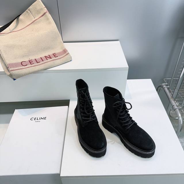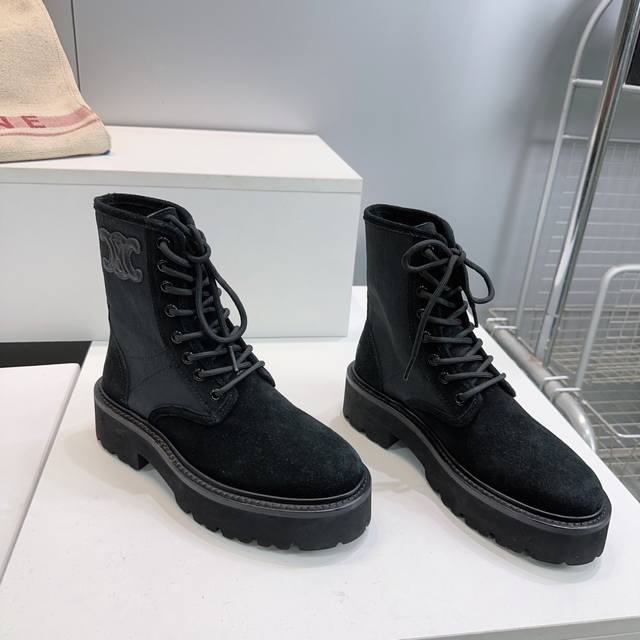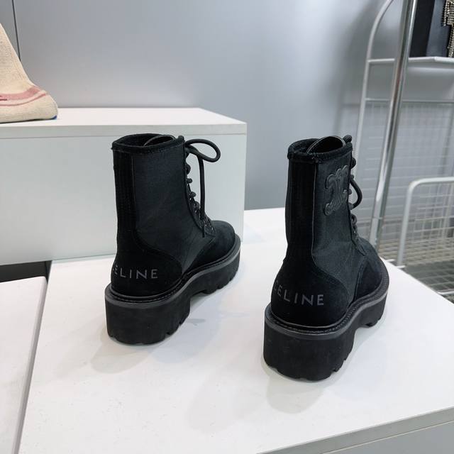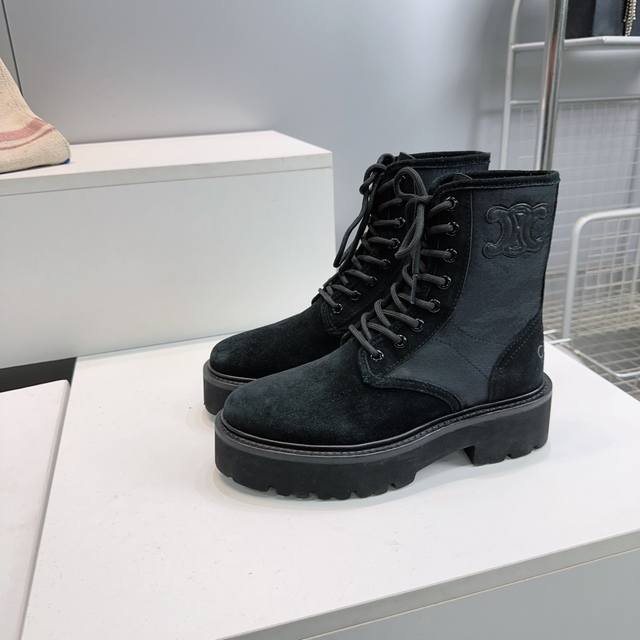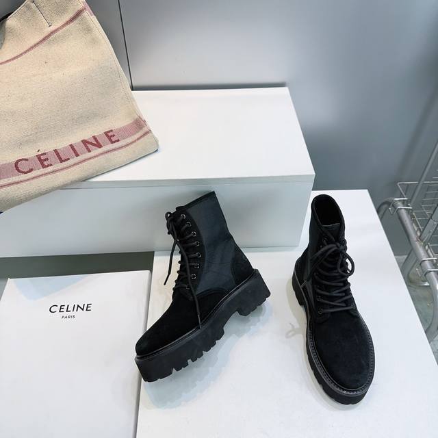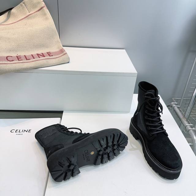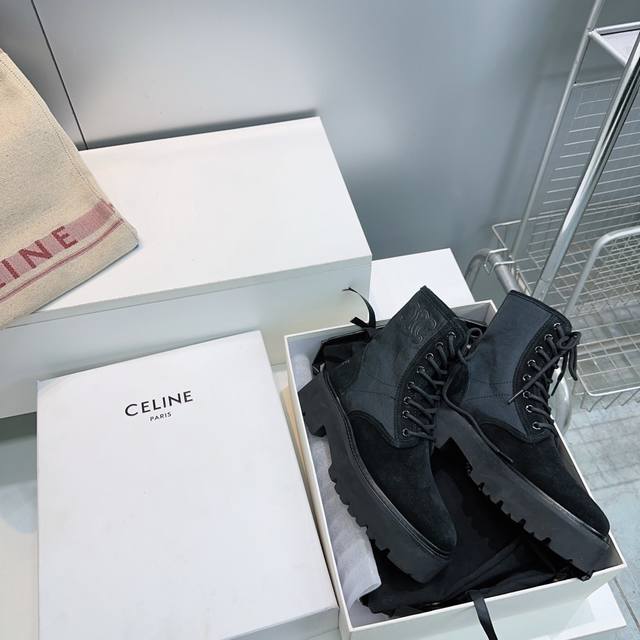 High-quality factory! Top-quality Celine 25Ss Fall/Winter Arc de Triomphe Classic Retro Platform Lace-up Martin Boots! A trendy item exclusively customized for goddesses this fall and winter! The lace-up platform design provides height, the cut is superb, and it's a fashionable and trendy shoe that's all the rage this season. It's a versatile and stylish piece that can be both sweet and edgy, a perfect accessory! The upper is made of imported high-density canvas combined with cow suede, the inner lining is canvas, the insole is made of sheepskin, and the outsole is made of original molded non-slip rubber! Sizes: 35-42, 40, 41, 42. Custom orders are non-refundable and non-exchangeable. Comes with original packaging.