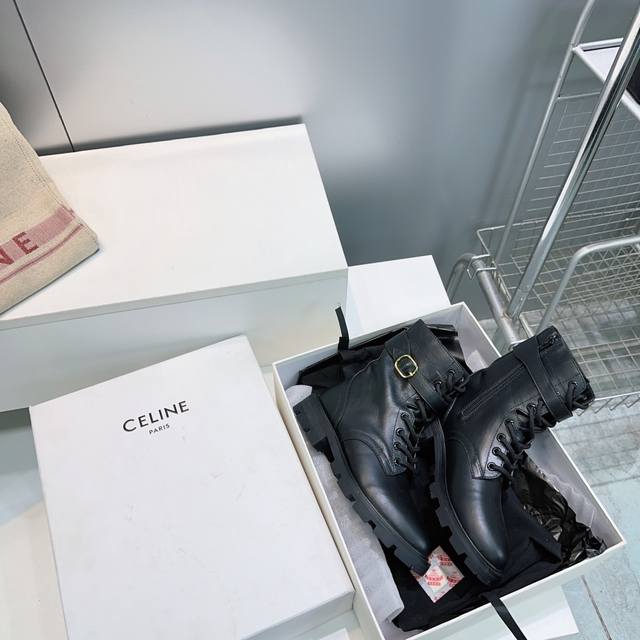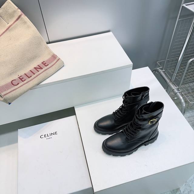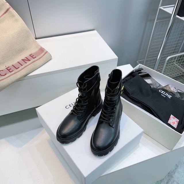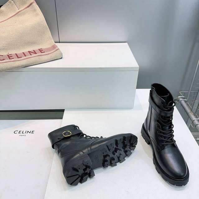 High-quality factory! Top-quality Celine 25Ss Fall/Winter Triumph Classic Retro Platform Lace-up & Buckle Martin Boots! A series of trendy items exclusively customized for goddesses this fall and winter! The lace-up platform design provides height, the cut is superb, and these trendy shoes are fashionable and stylish this season. A versatile and simple style, perfect for any outfit! The upper is made of imported calfskin, the insole is made of sheepskin, and the outsole is made of original molded, non-slip, and wear-resistant rubber! Sizes: 35-42, 40, 41, 42. Custom orders are non-refundable and non-exchangeable. Comes with original packaging.