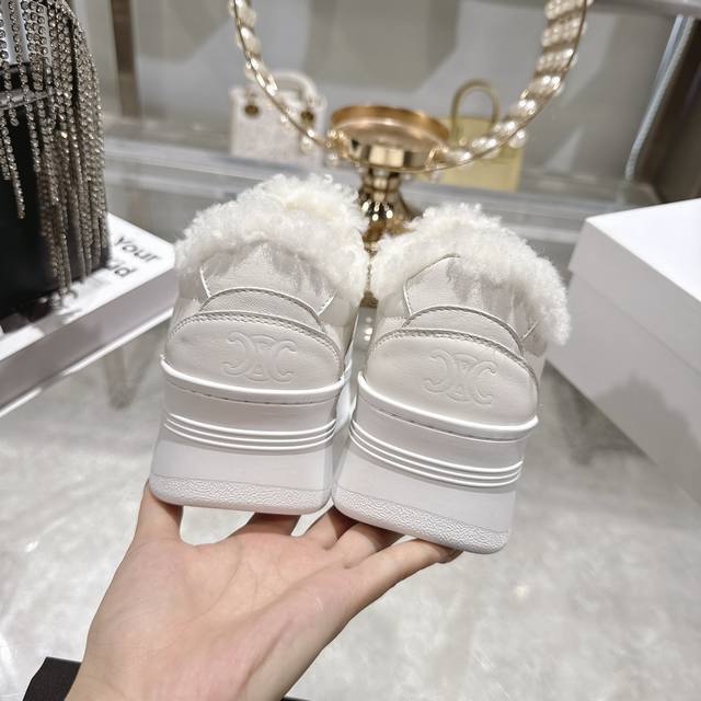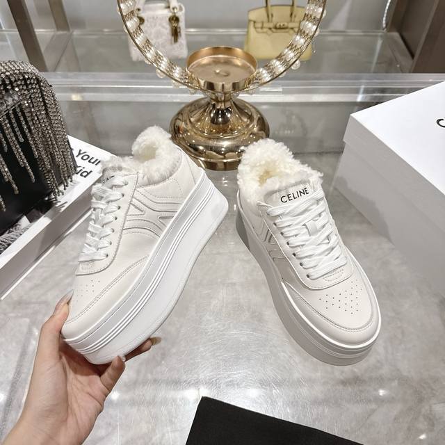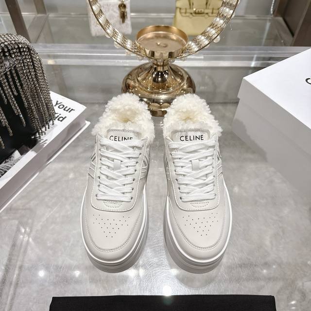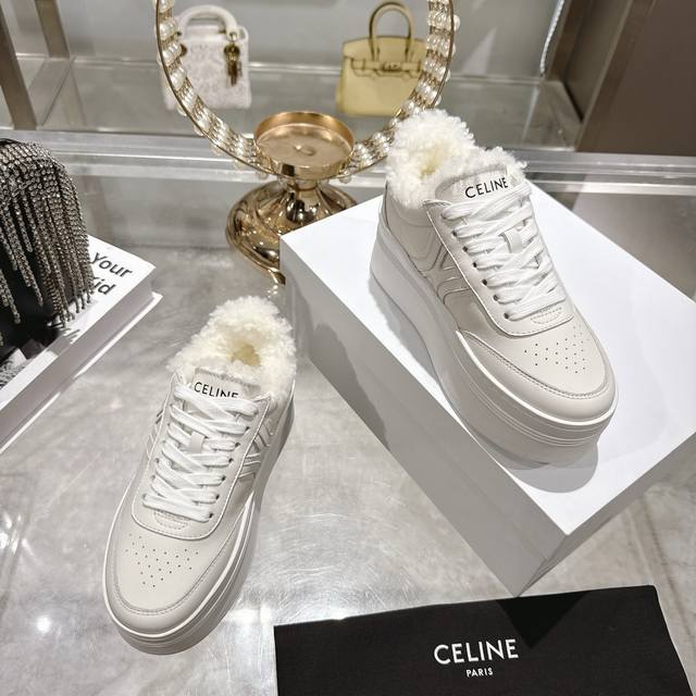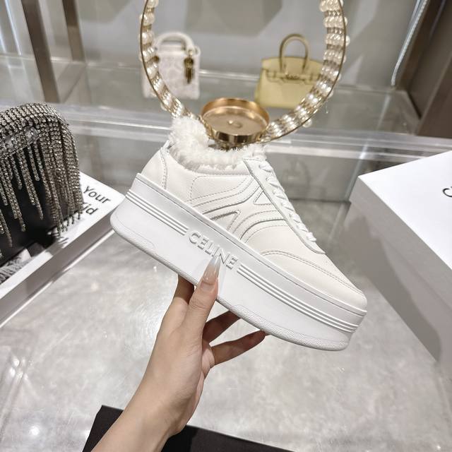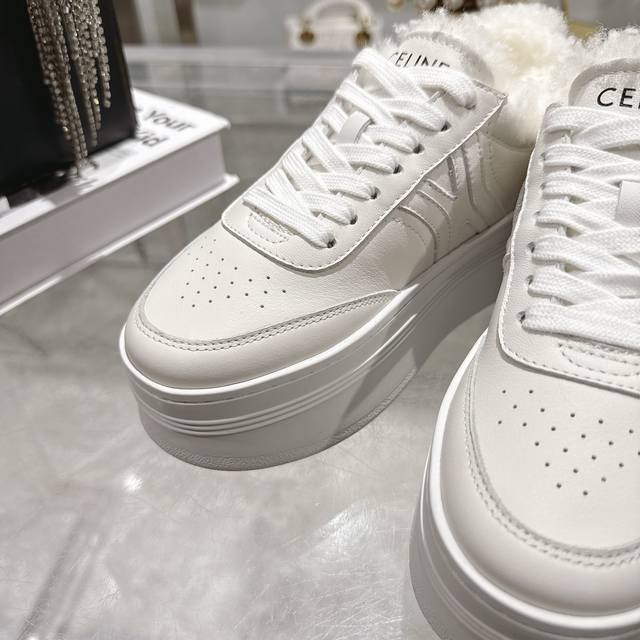 High-quality factory version DDD Celine 2025Ss new logo lace-up platform wool-lined casual white sneakers DDD Simple and comfortable, clean and neat, height-enhancing and leg-slimming, whether worn alone or paired with wide-leg pants, high-street and retro, be a Celine girl together DDD Upper: Imported top-grain calfskin DDD Lining: Imported wool DDD Outsole: Original 1:1 molded outsole DDD Sizes: 35-40, 40 custom-made DDD