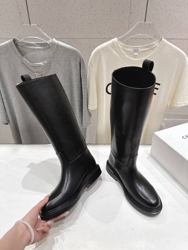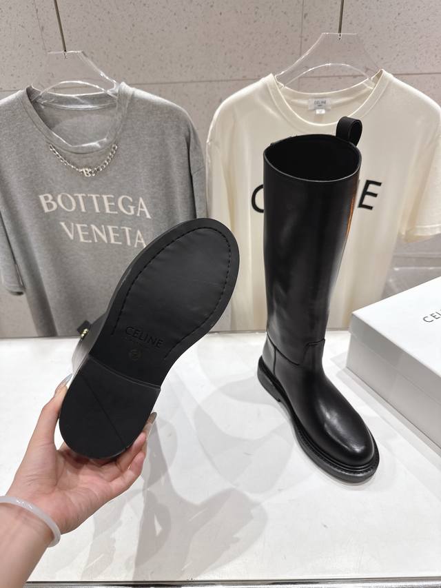 High-quality factory-made Celine F041 2025 Autumn/Winter New Style Stylish British Long Boots/Knight Boots! Retro, simple, and fashionable, comfortable and versatile! Understated and simple design, super stylish look with a touch of retro, slimming and lightweight, versatile styling options. Upper: Made of original imported waxed calfskin. Insole: Imported silk cowhide. Outsole: Original molded outsole + genuine leather welt. Sizes: 35-39, 40. Custom orders are non-refundable and non-exchangeable.