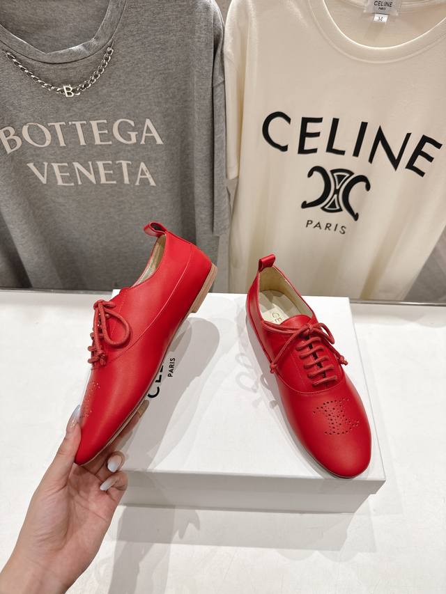 High-quality factory-made Celine F052 2025Ss new Mary Jane Brogue retro style flat casual loafers. A popular online trend! First to be experienced by major online celebrities, a must-have for Celine influencers on Instagram, very retro style, a powerful piece, with a very novel design, high-end and very comfortable. 1:1 replica of the original! Absolutely original craftsmanship! Material: Imported top-grain cowhide; Lining: Sheepskin; Outsole: Italian genuine leather; Size: 35-40 (40 sizes are custom-made and non-refundable).