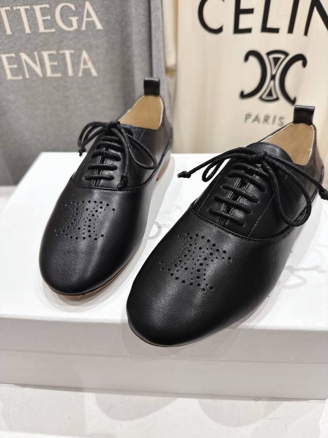 High-quality factory-made Celine F052 2025Ss new Mary Jane Brogue retro style flat casual loafers. A popular online trend! First to be experienced by major online celebrities, a must-have for Celine influencers on Instagram, very retro style, a powerful piece, with a very novel design, high-end and very comfortable. 1:1 replica of the original! Absolutely original craftsmanship! Material: Imported top-grain cowhide; Lining: Sheepskin; Outsole: Italian genuine leather; Size: 35-40 (40 sizes are custom-made and non-refundable).