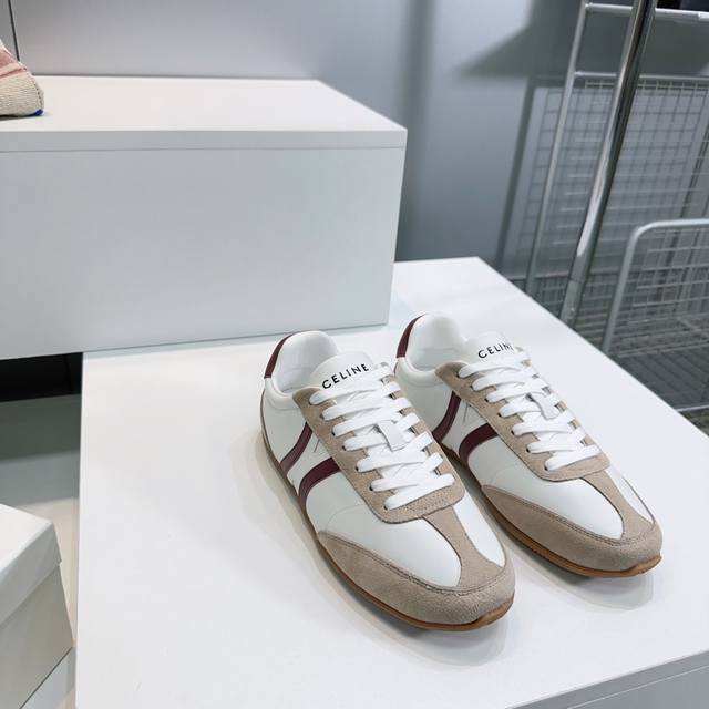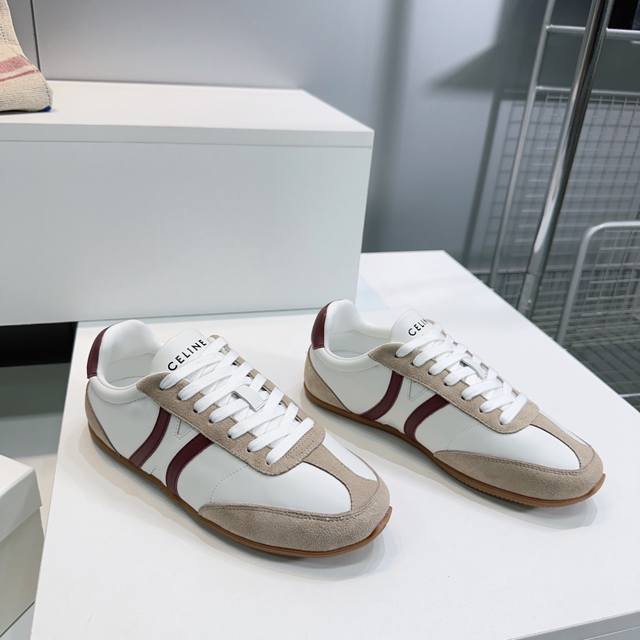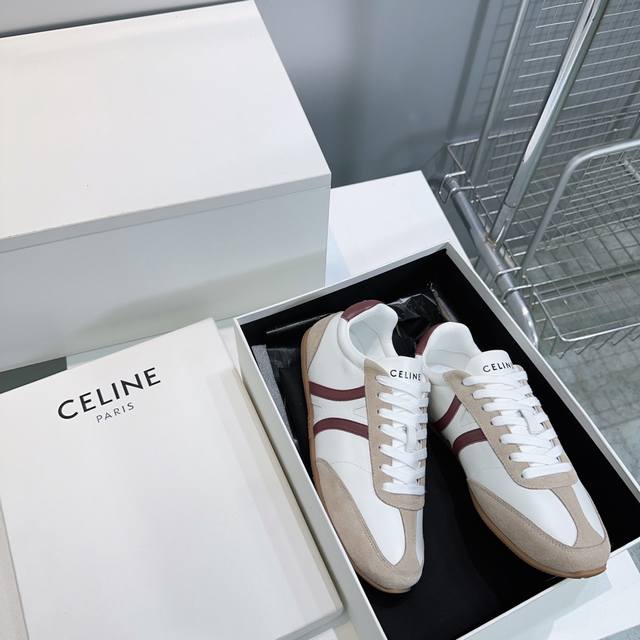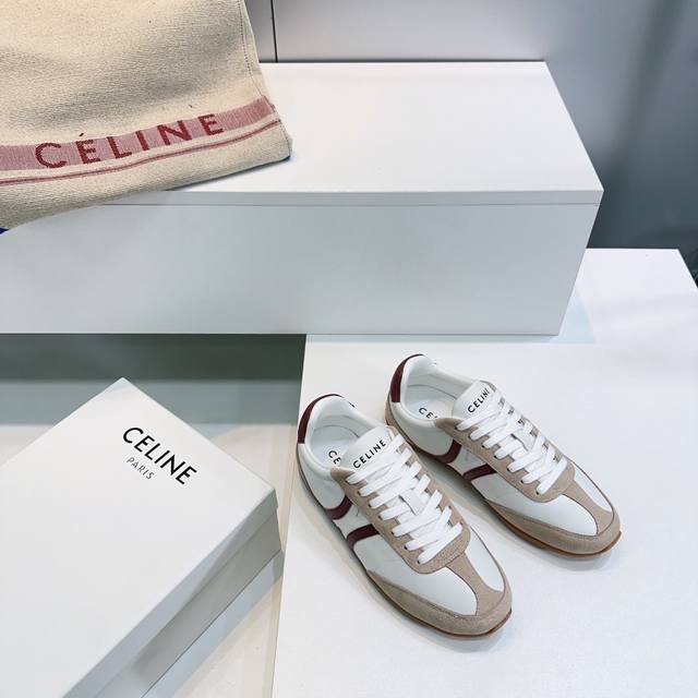 High-quality factory-made flat shoes for women and men! Top-quality couple style Celine 2025 Spring/Summer new collection runway main style Arc de Triomphe logo lace-up casual shoes white sneakers
