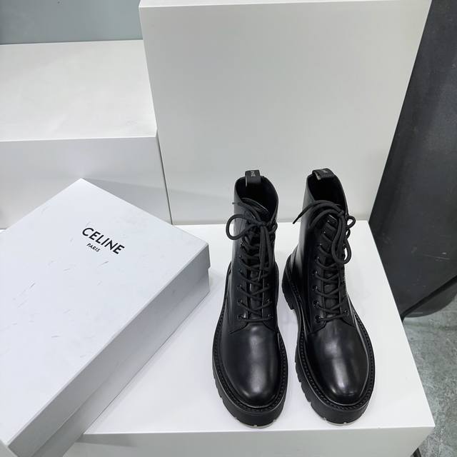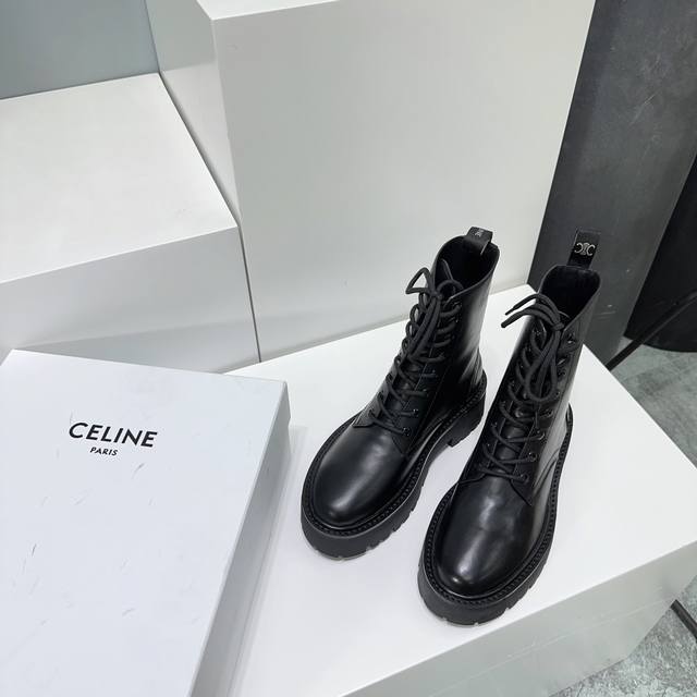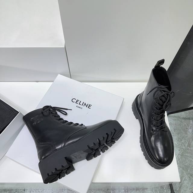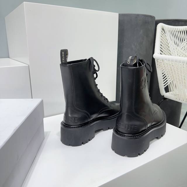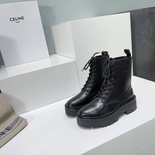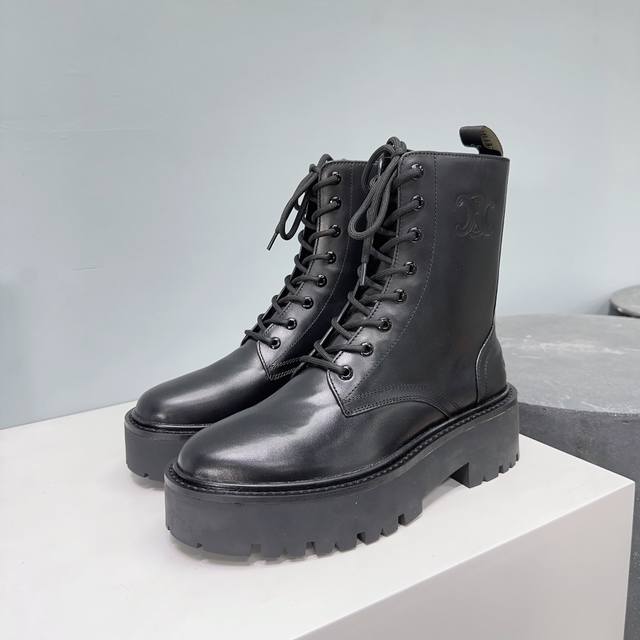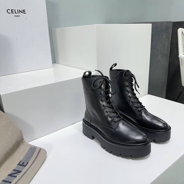 High-quality factory-made leather and fabric uppers! Top-quality Celine 25Ss Fall/Winter classic new platform Martin boots with laces! The platform sole is super stylish and cool! Elegant yet chic, absolutely perfect with jeans
